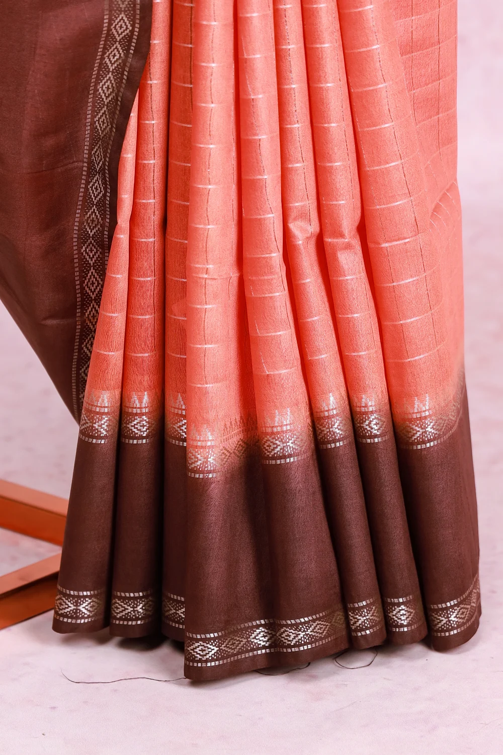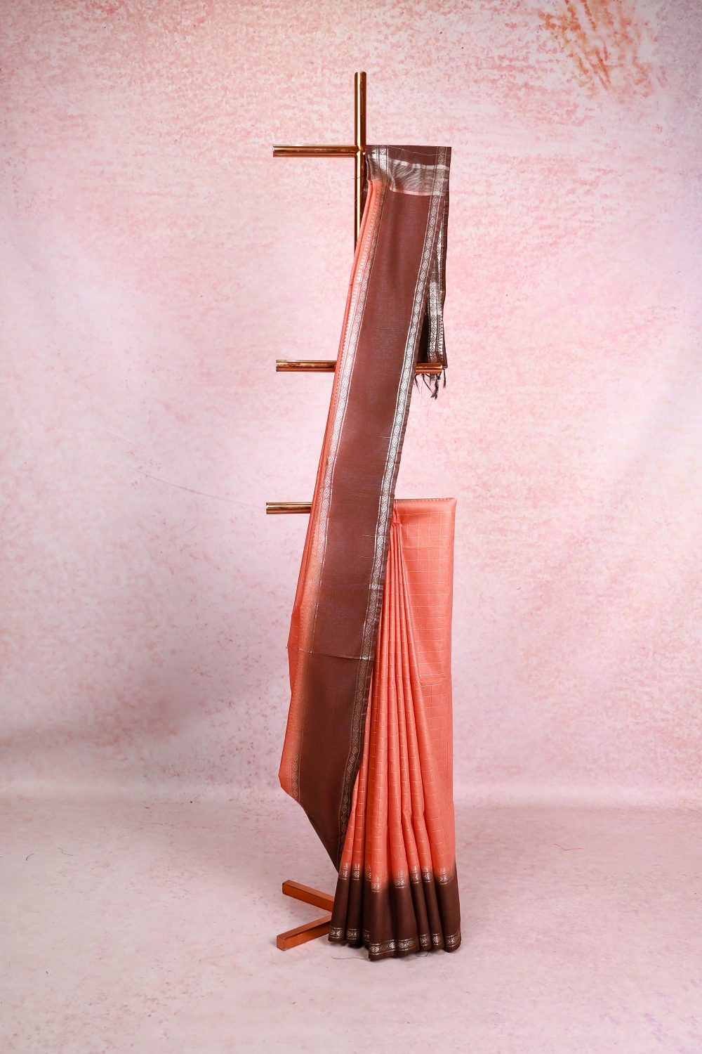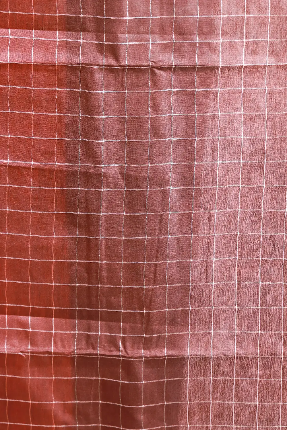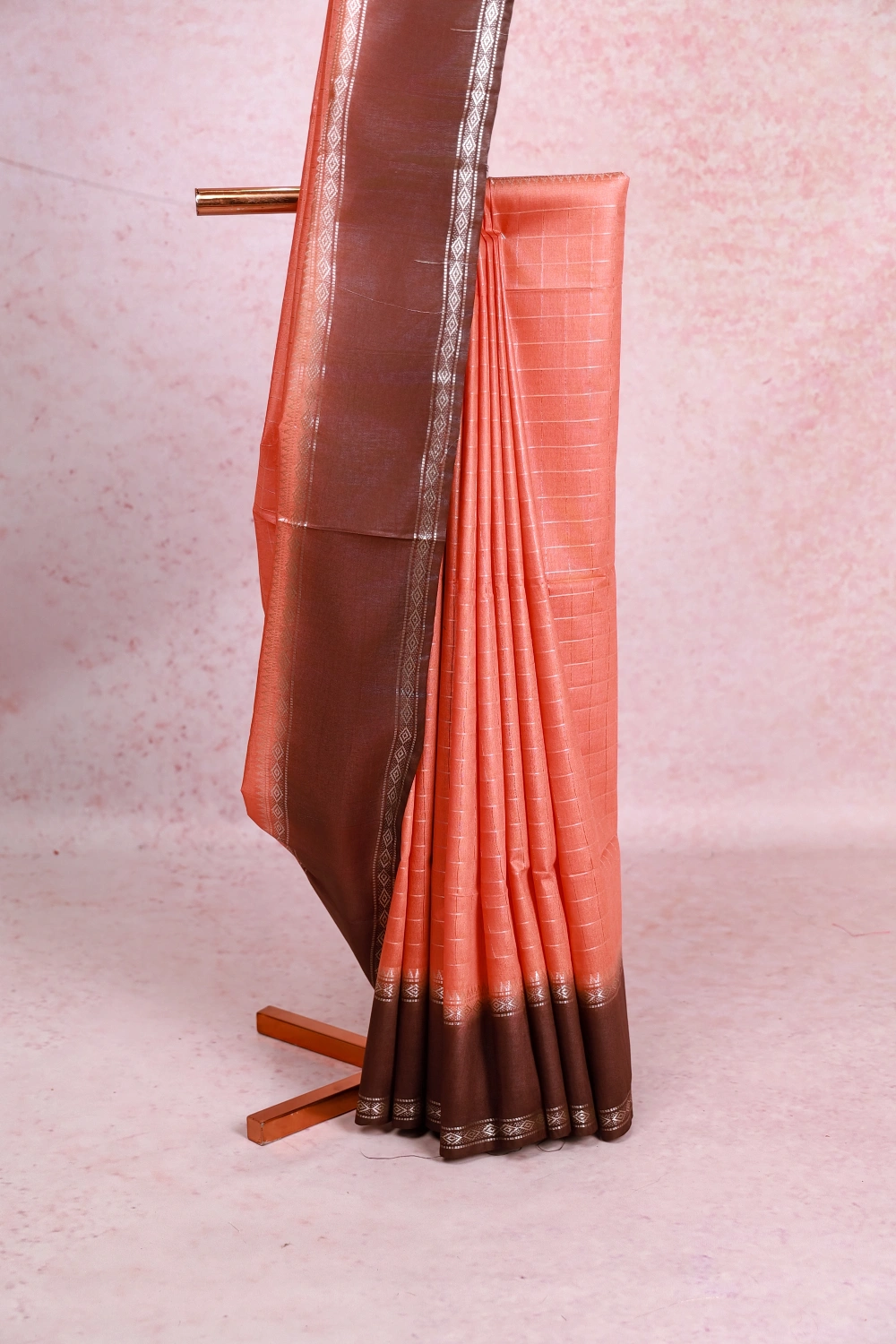 Orange Semi Tussar Checks Saree With Designer Border. Includes Un Stitched Blouse
