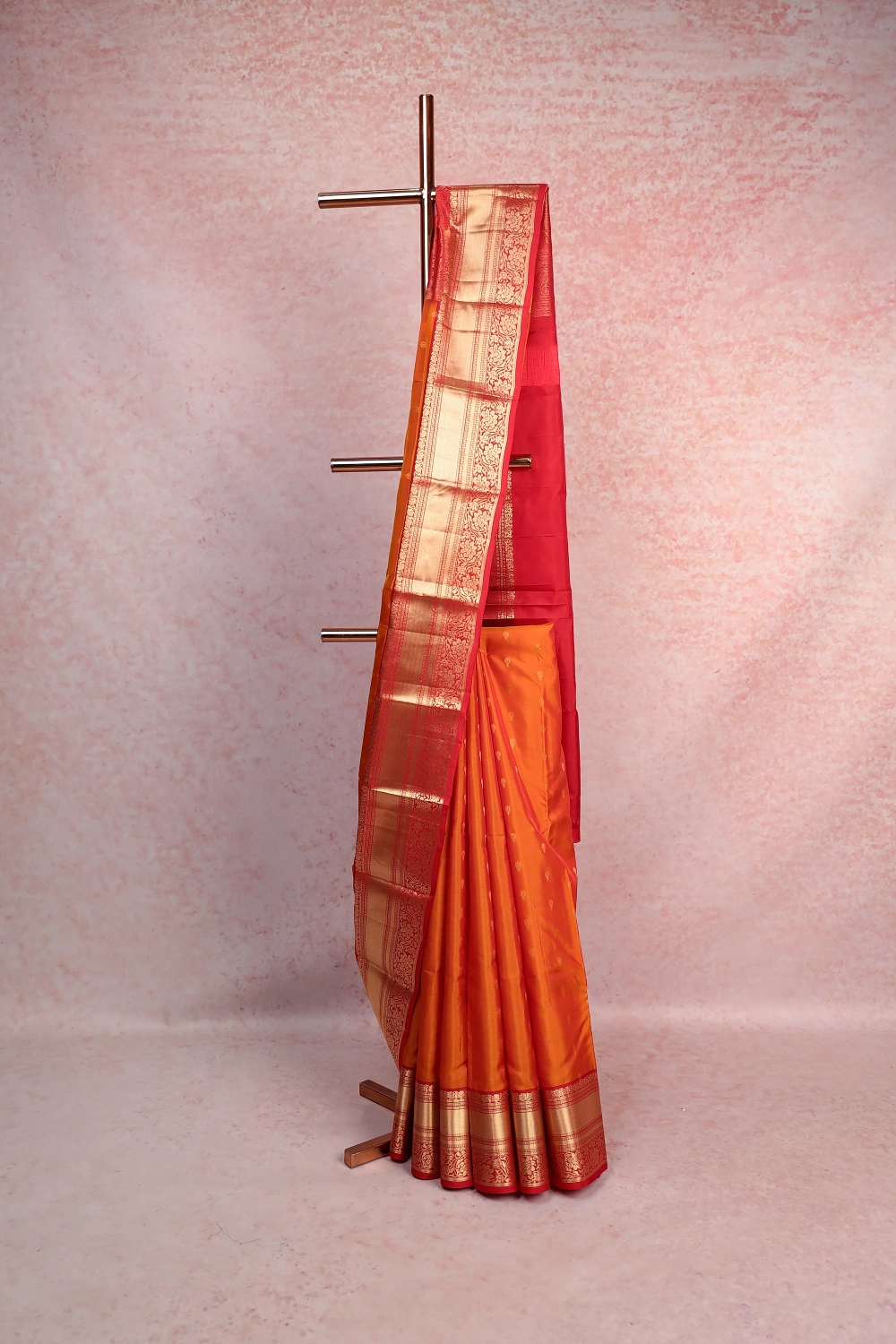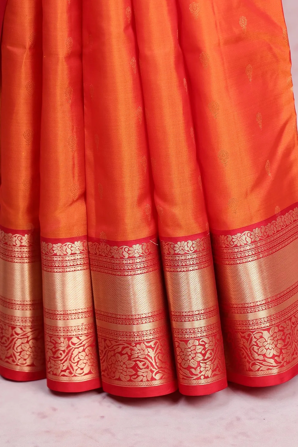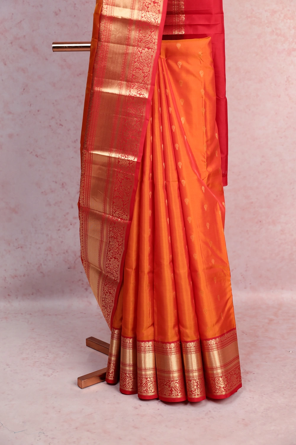 Orange Traditional Kancheepuram Soft Silk Butta Saree with Designer Border. Includes Unstitched Blouse