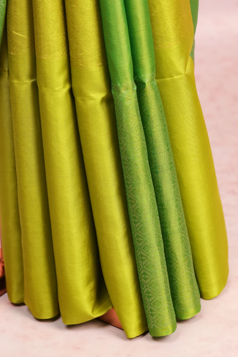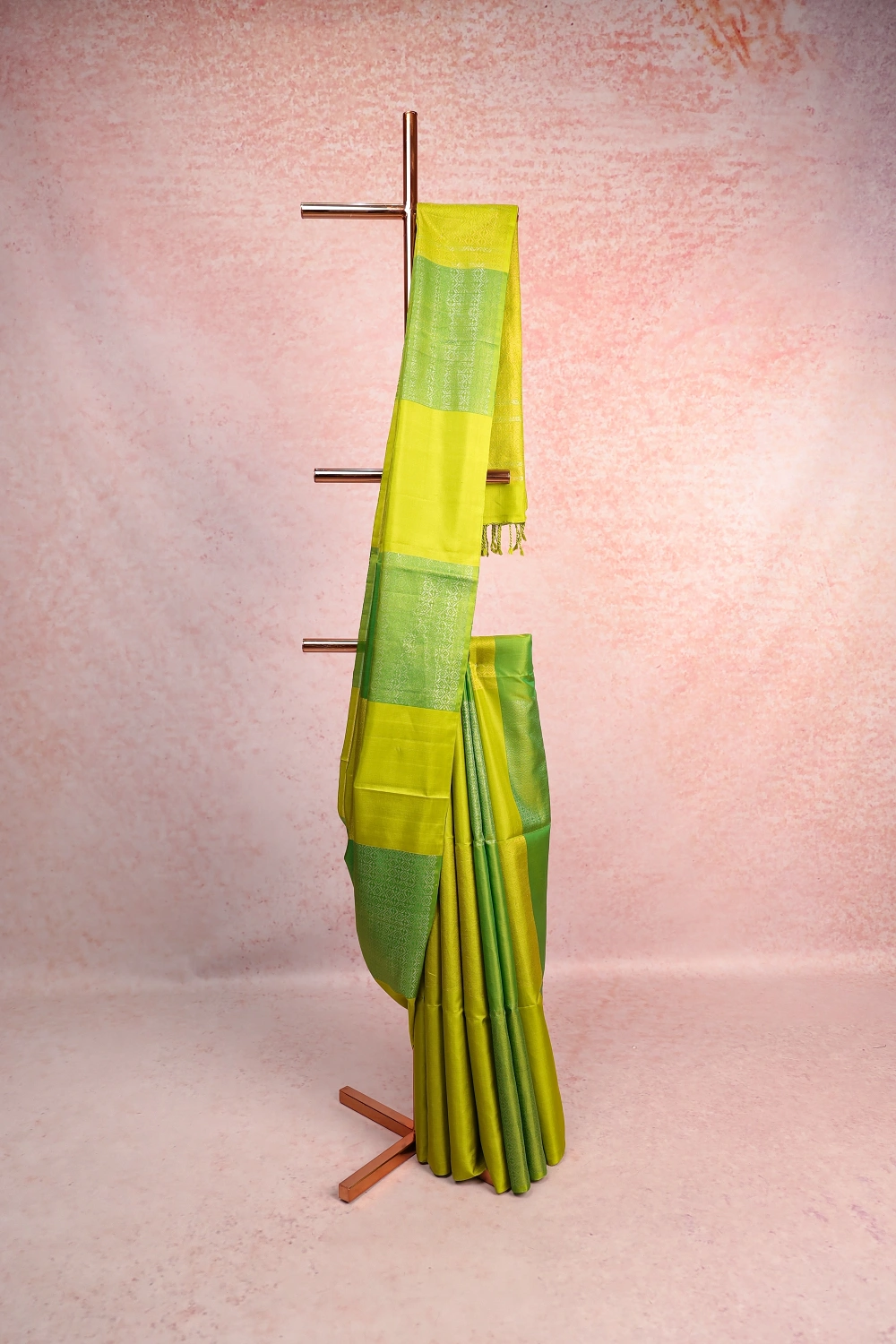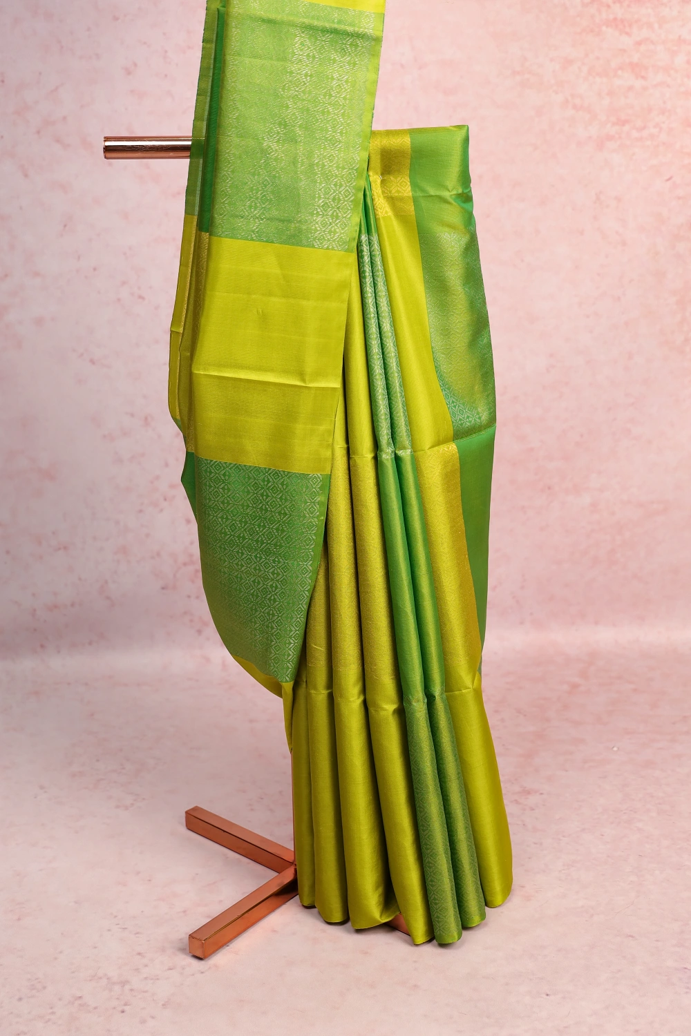 Parrot Green Kanchi Soft Silk Box Design Saree with Without Border. Includes Unstitched Blouse