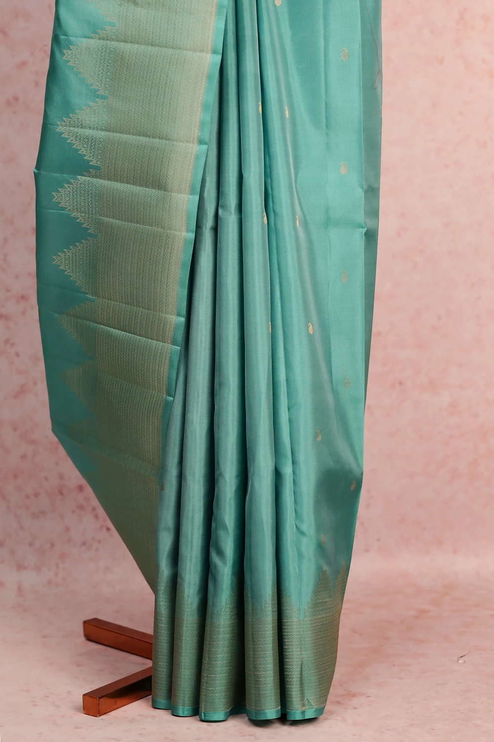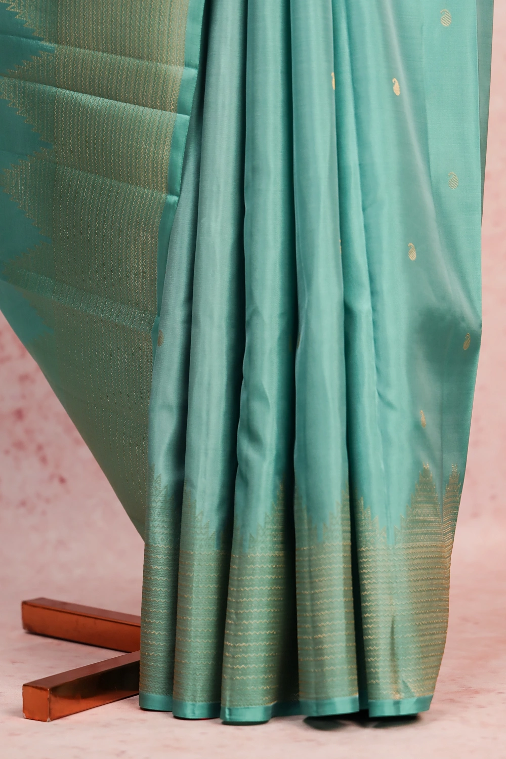 Pastel Blue Kancheepuram Soft Silk Butta Saree with Temple Border. Includes Unstitched Blouse