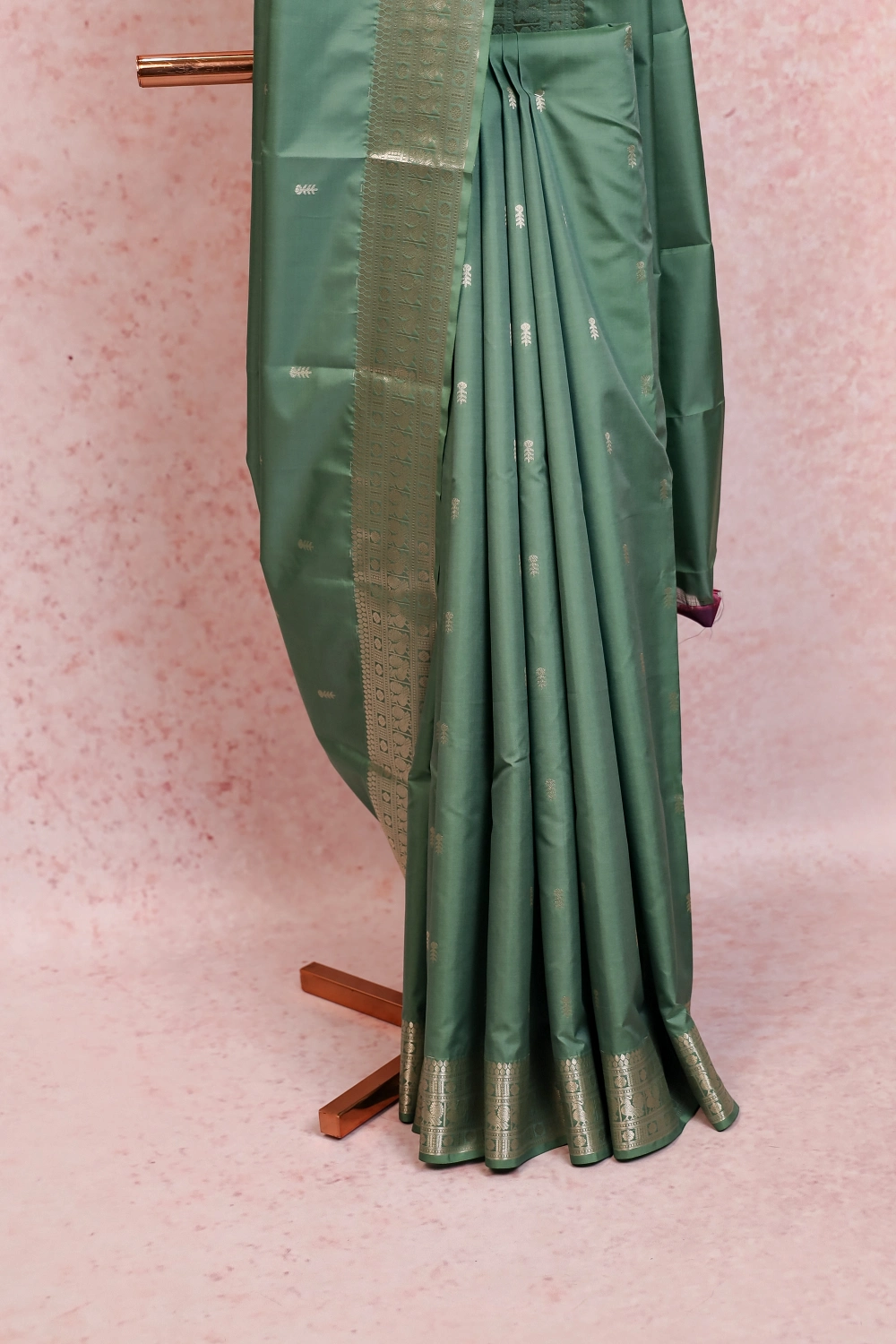 Pastel Green Kancheepuram Semi Silk Butta Saree with Designer Border. Includes Unstitched Blouse
