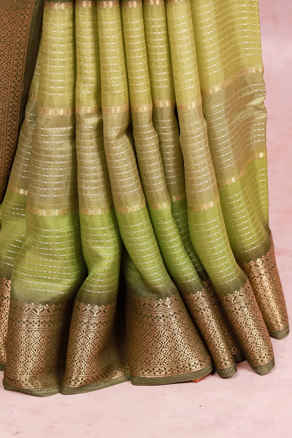 Pastel Green Multi Shades Semi Silk Zari Lines Saree With Banarasi Border. Includes Unstitched Blouse