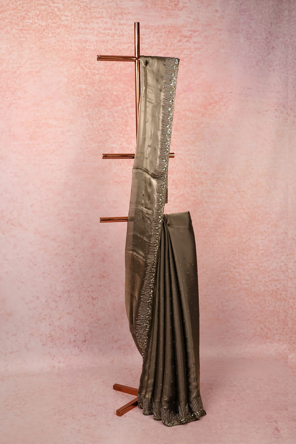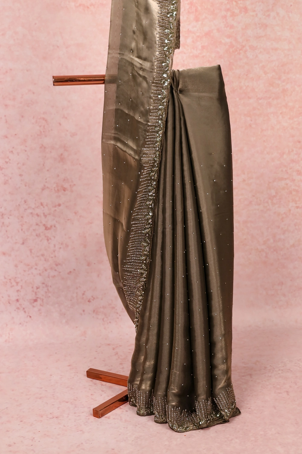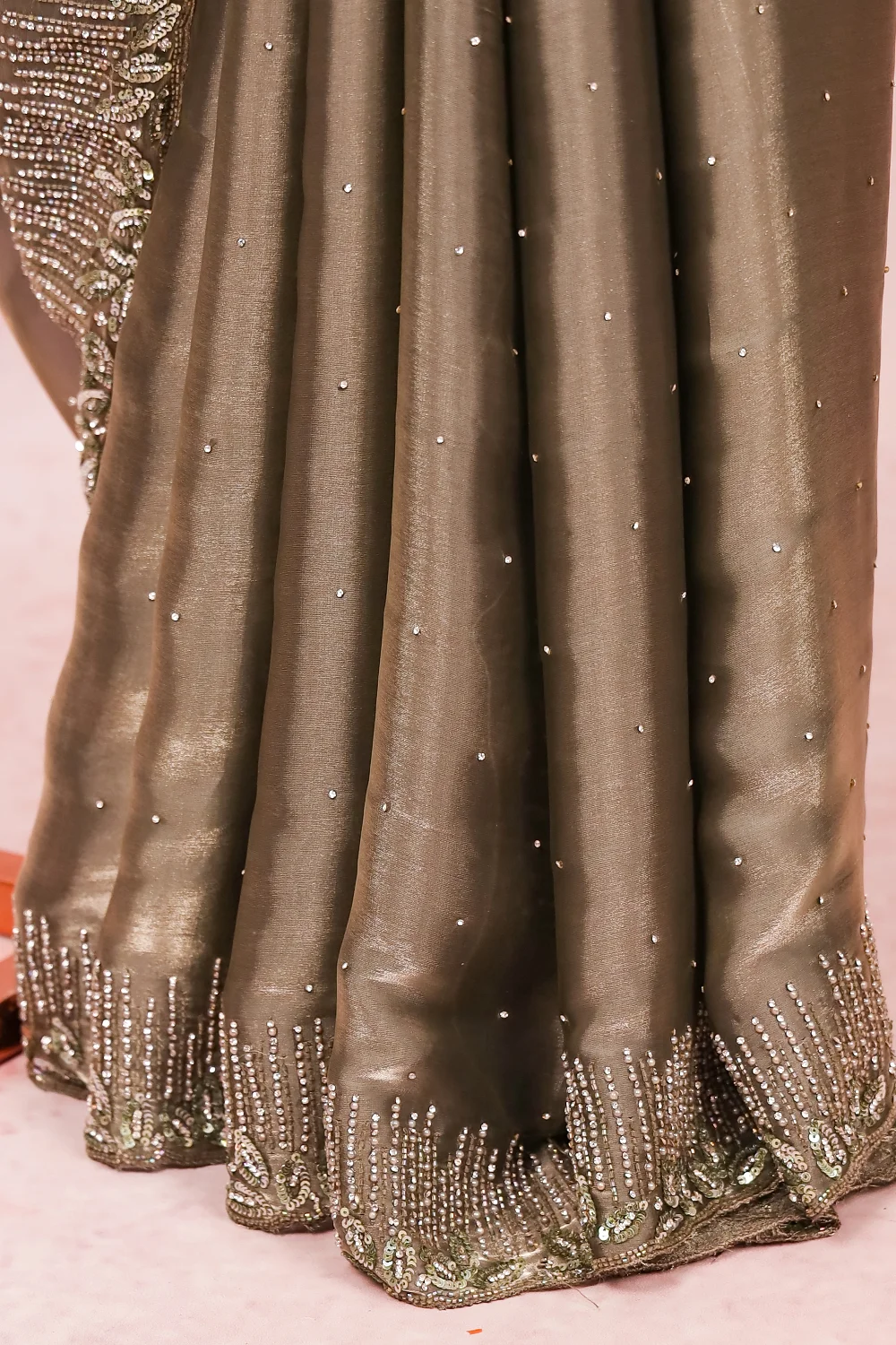 Pastel Green Tissue Stone Work Saree with Designer Border. Includes Unstitched Blouse