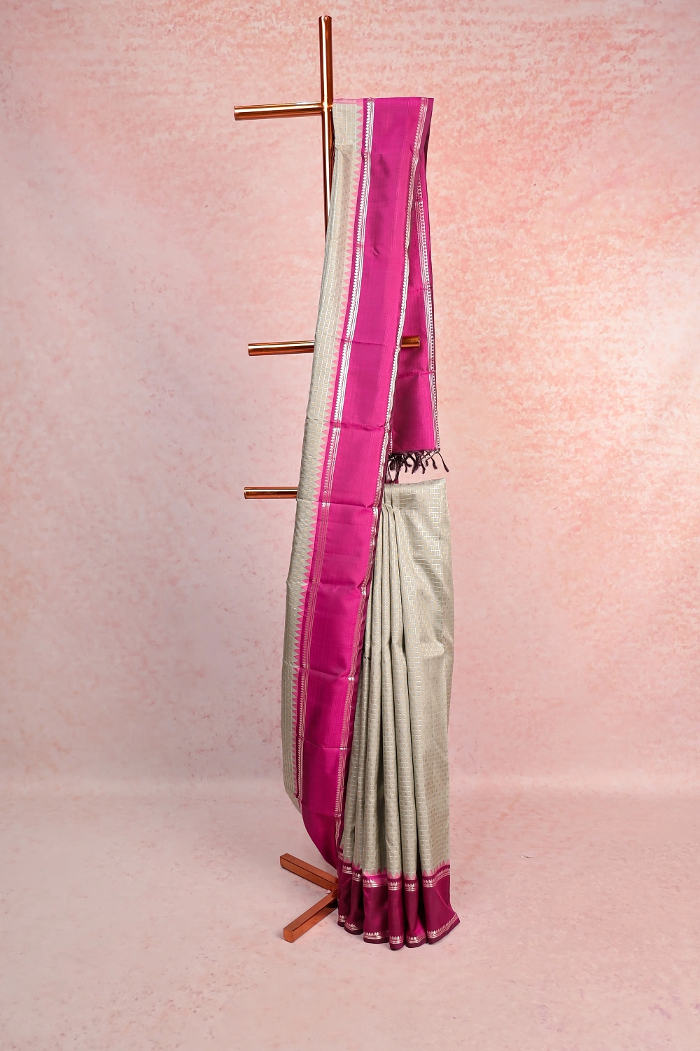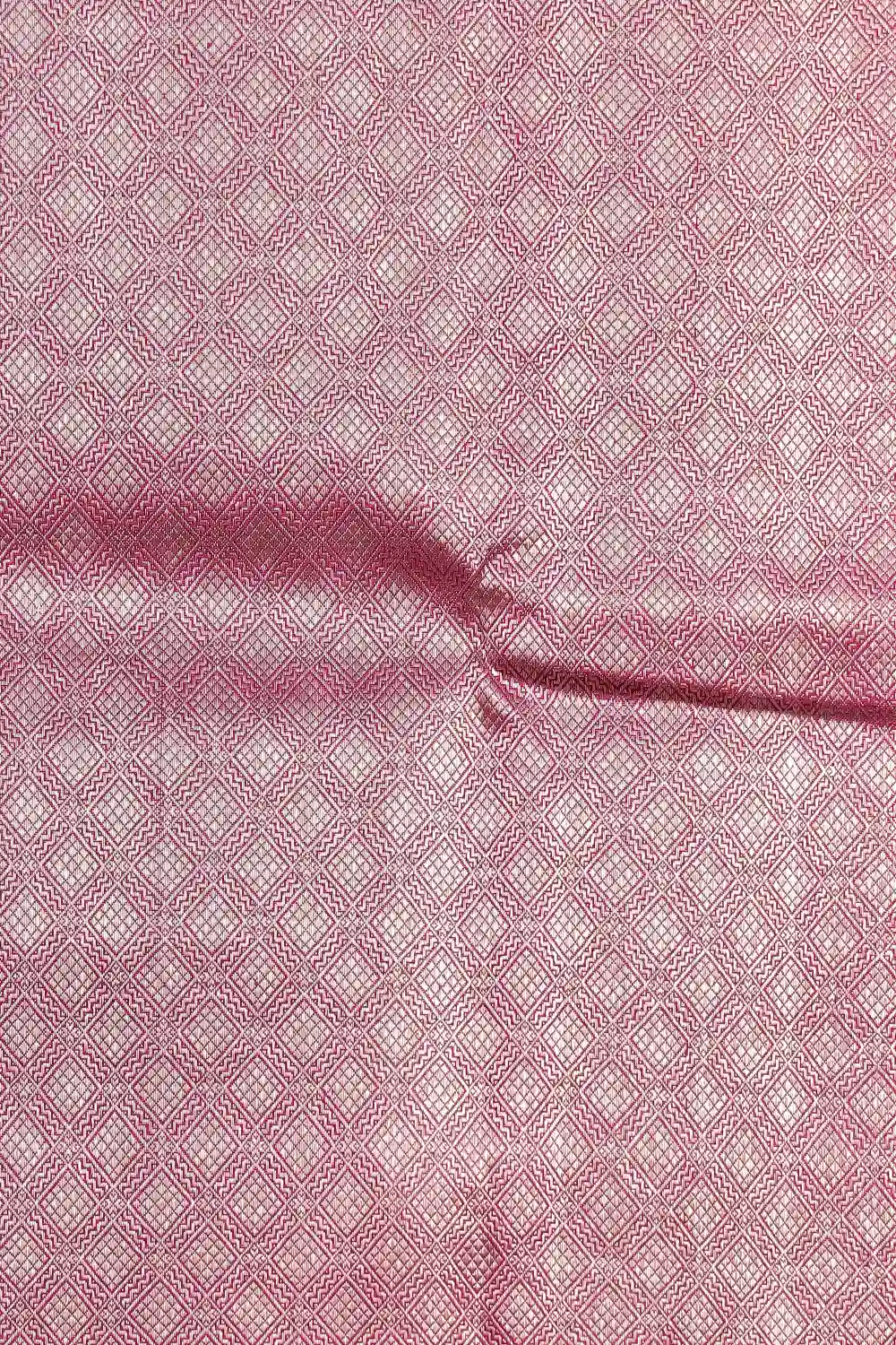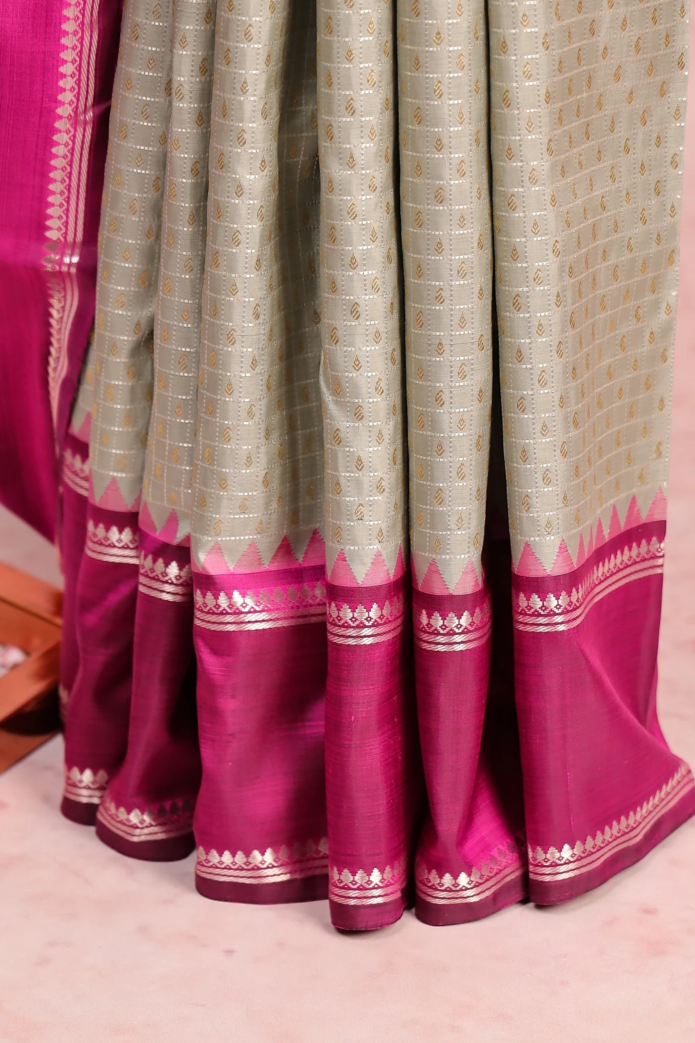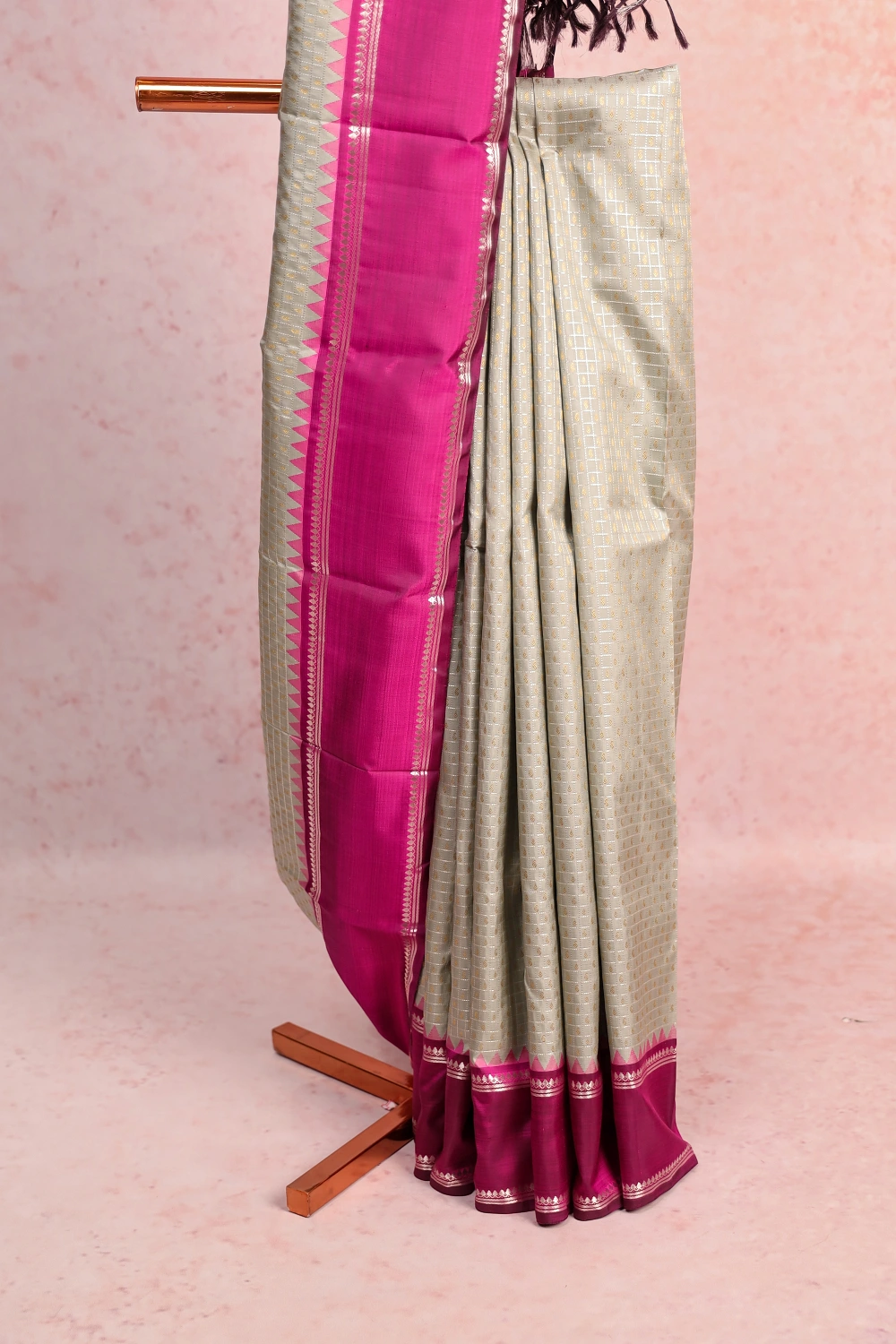 Pastel Kancheepuram Silk Check With Zari Butta Saree with Plain Border. Includes Unstitched Blouse