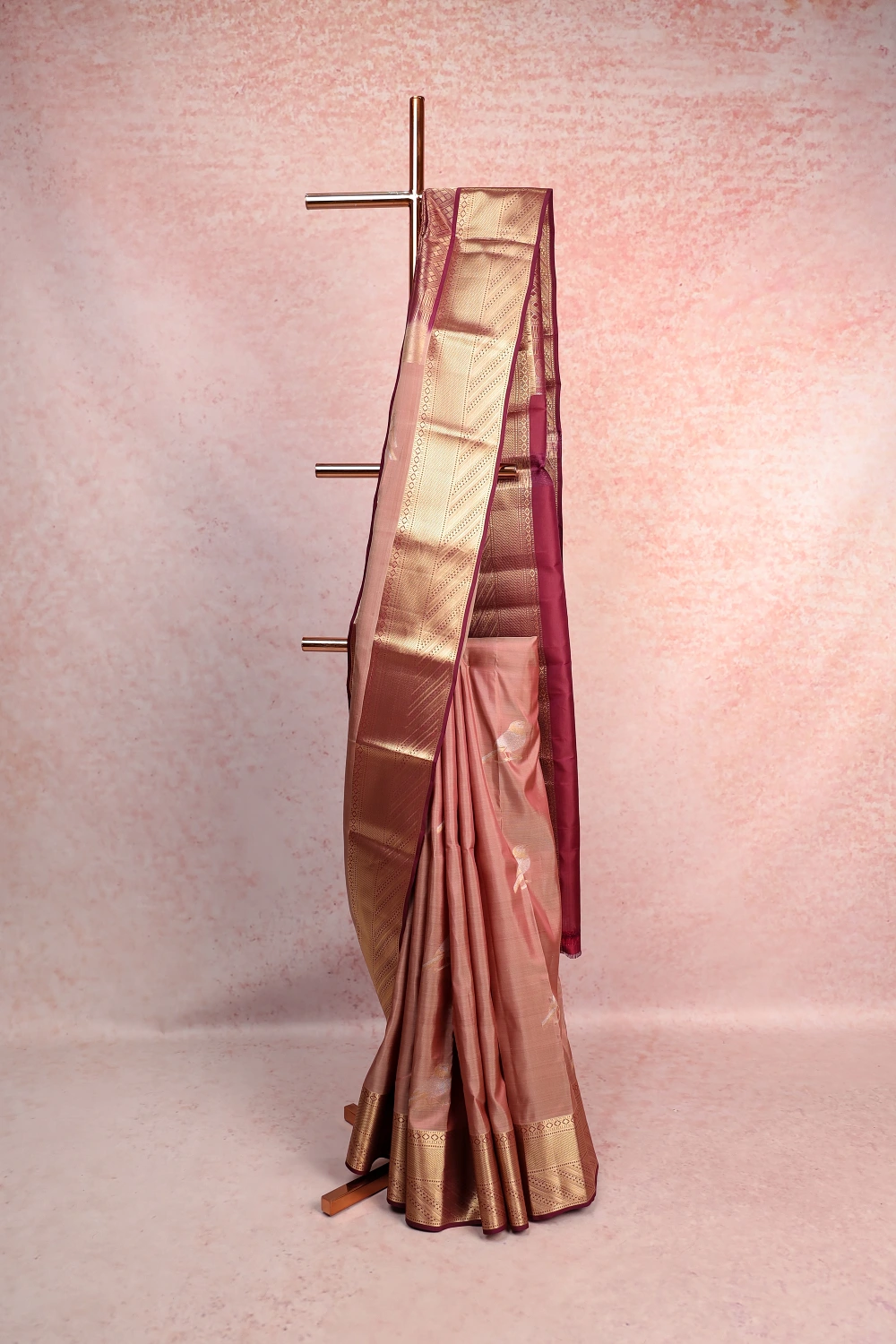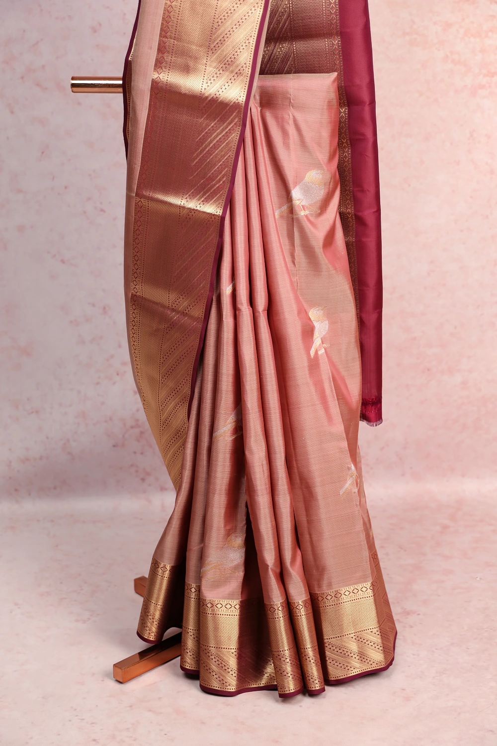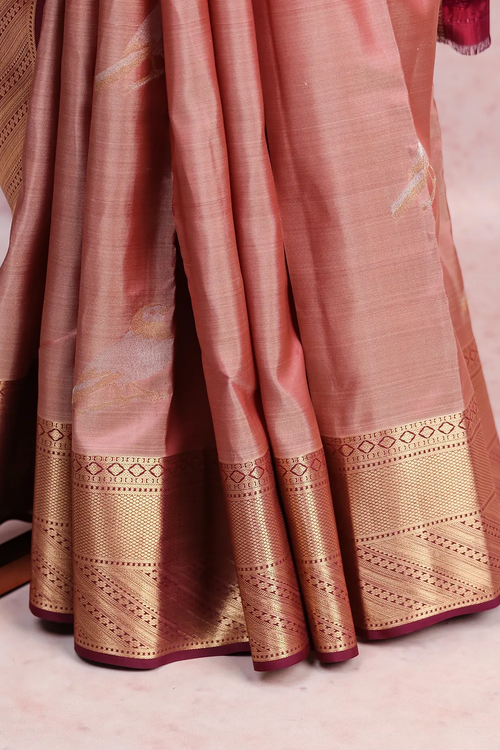 Pastel Kancheepuram Soft Silk Bird Design Saree with Designer Border. Includes Unstitched Blouse