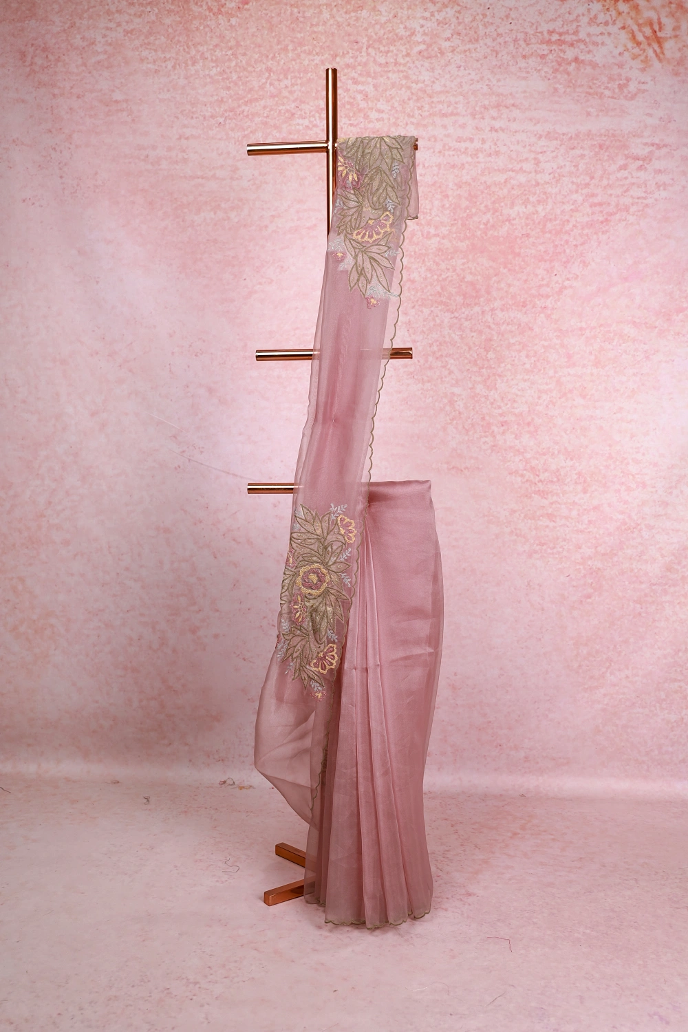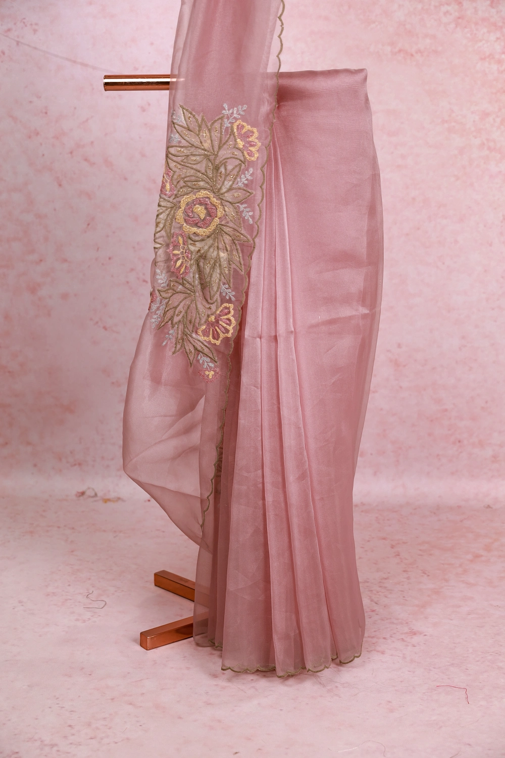 Pastel Pink Glass Organza Saree
