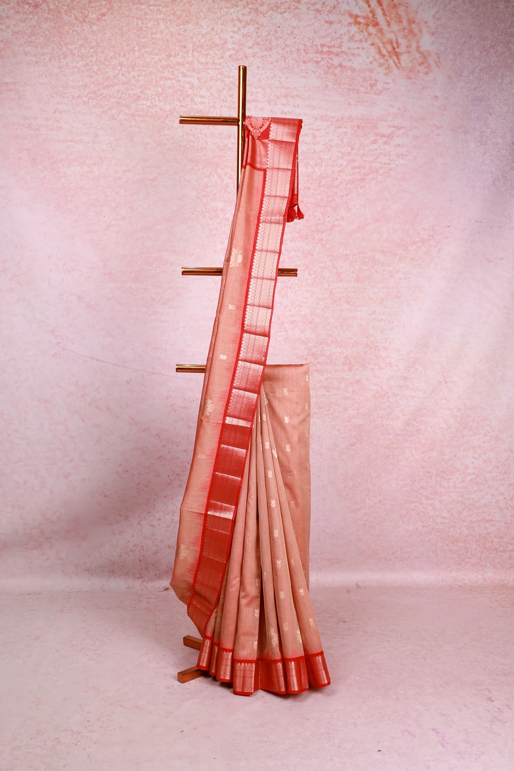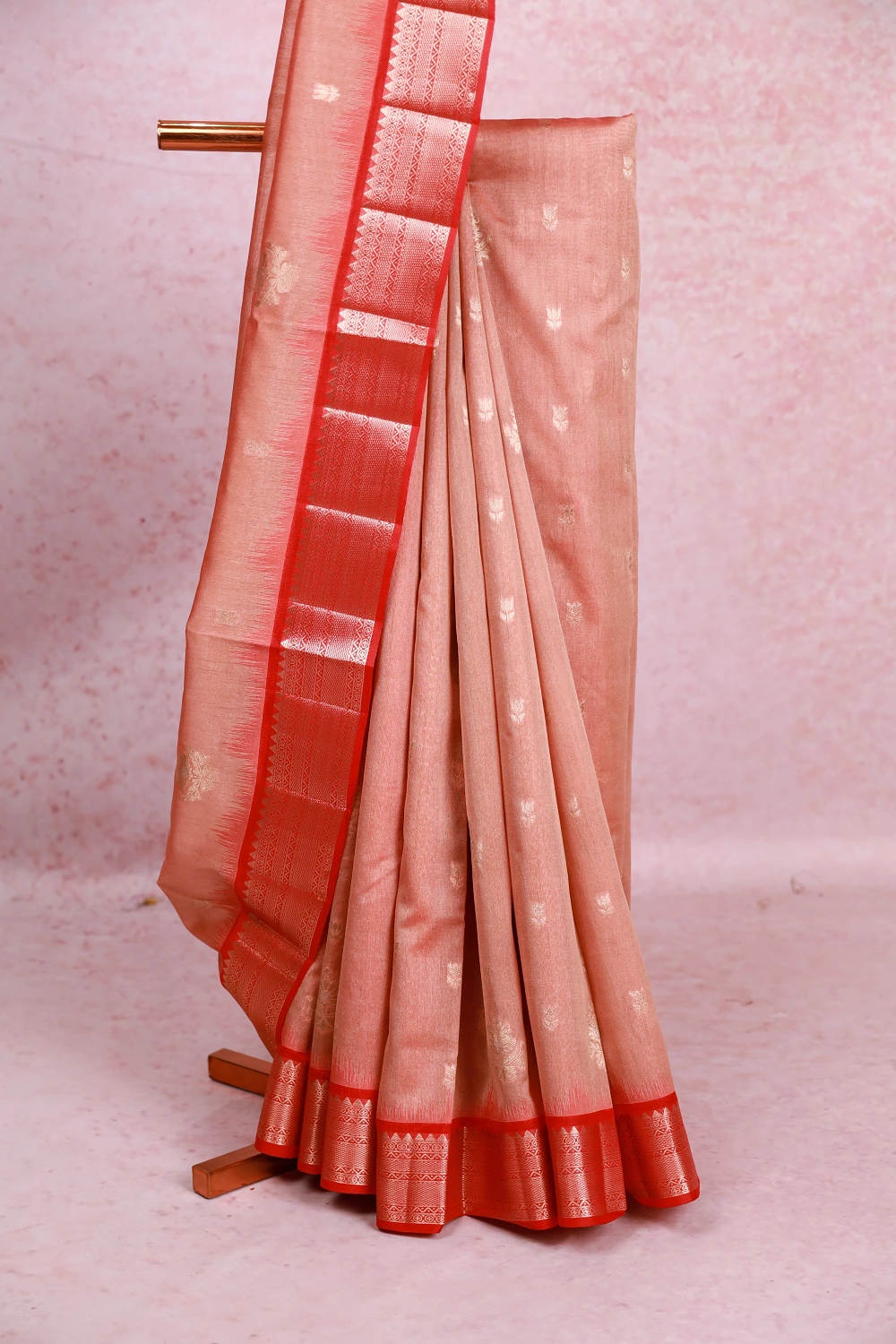 Peach Cotton Silk Butta Saree with Zari Border. Includes Unstitched Blouse