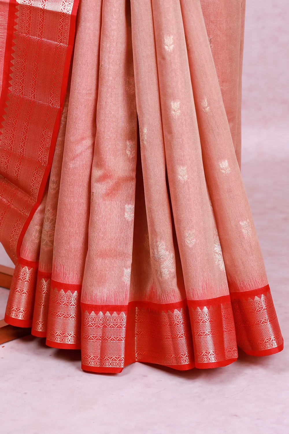 Peach Cotton Silk Saree