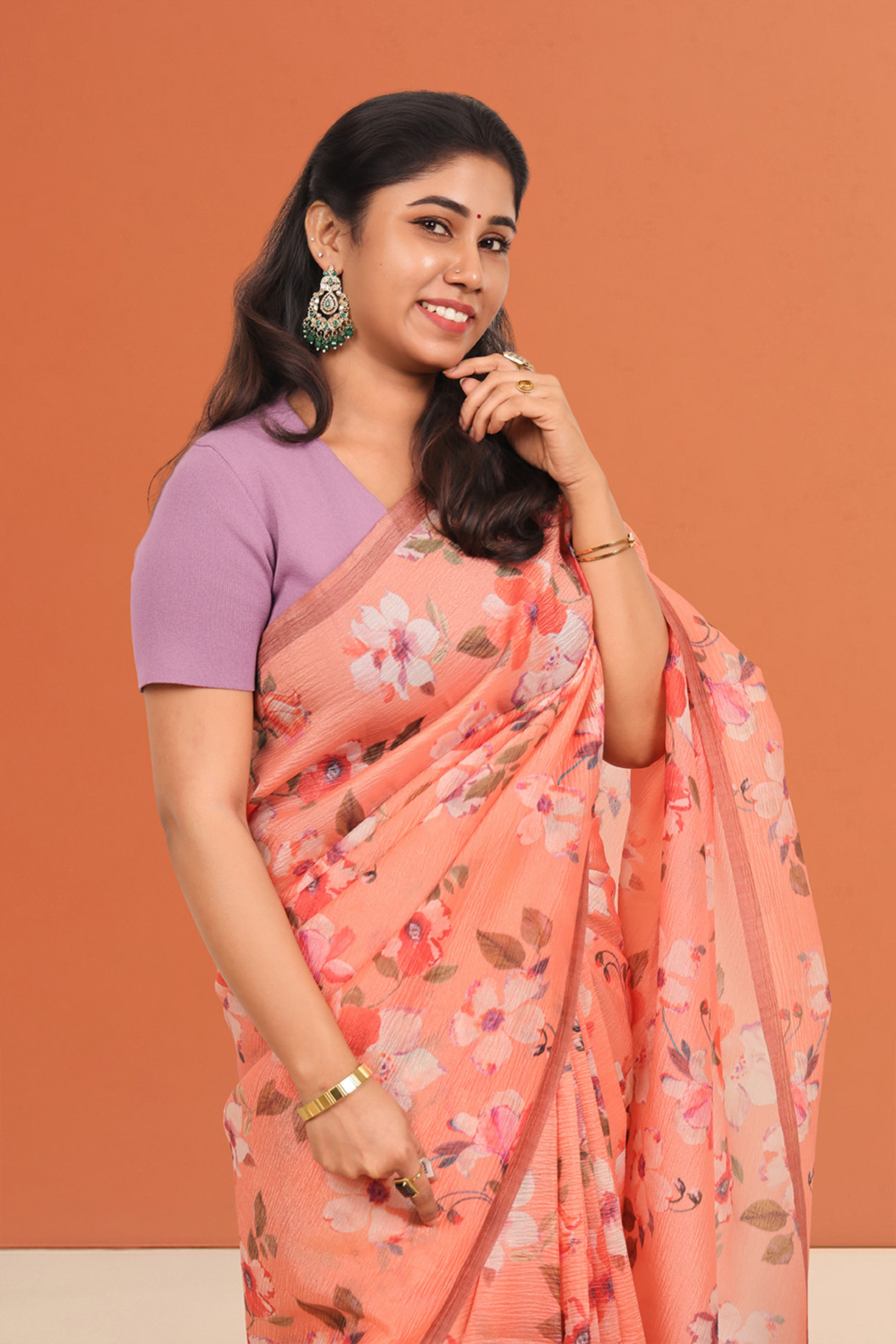Peach Crush Organza Saree