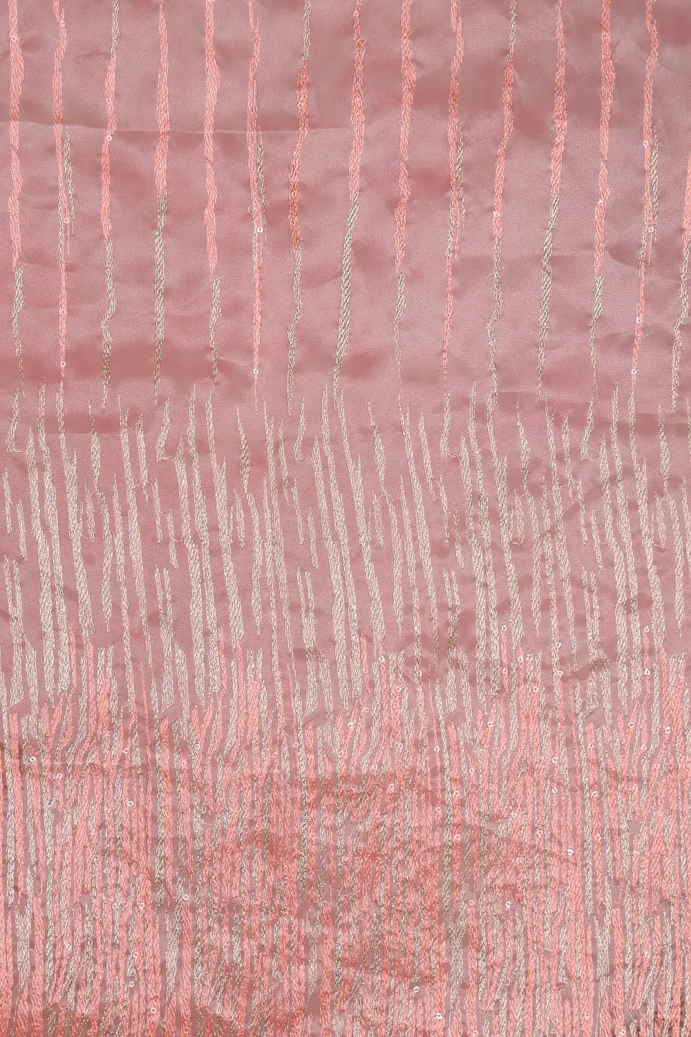 Peach Glass Organza Thread Work Saree with Scalp Border. Includes Unstitched Blouse