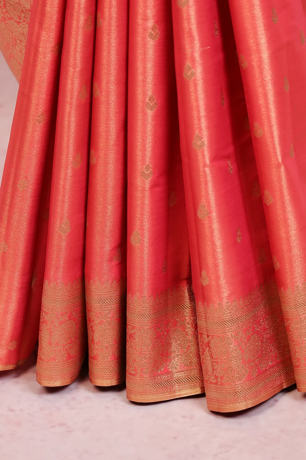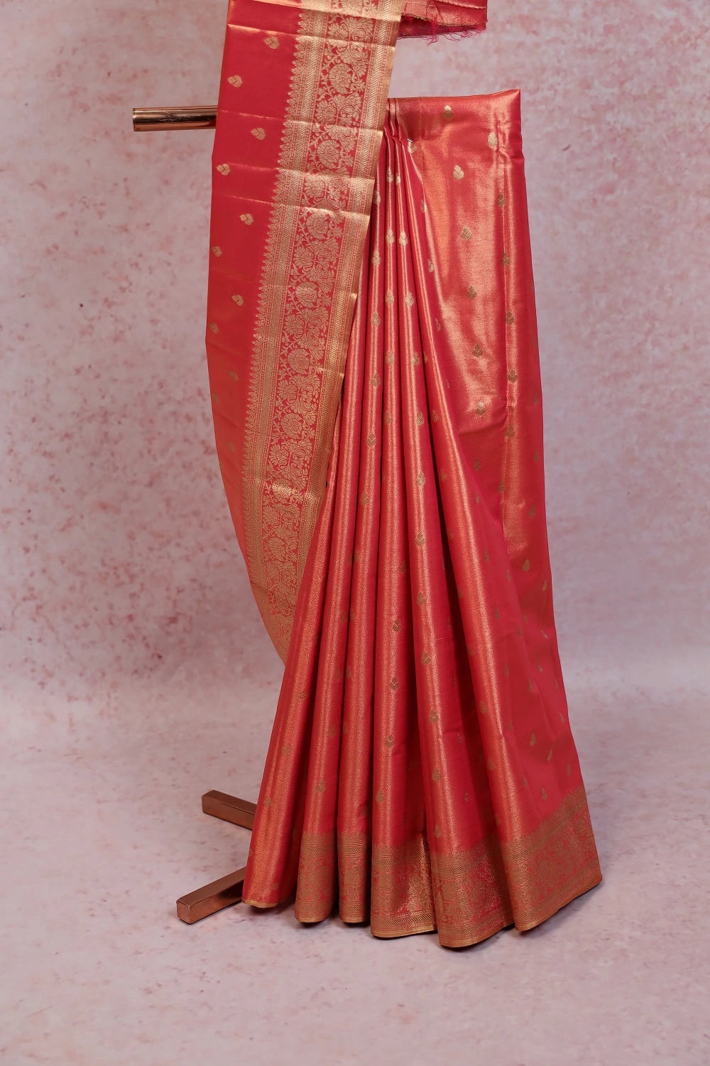 Peach Kancheepuram Semi Tissue Silk Butta Saree with Designer Border. Includes Unstitched Blouse