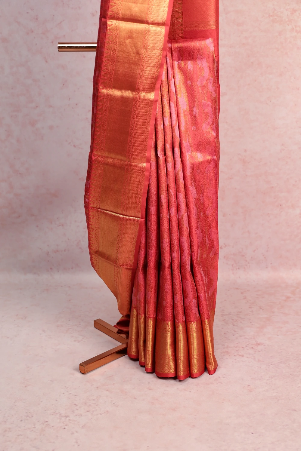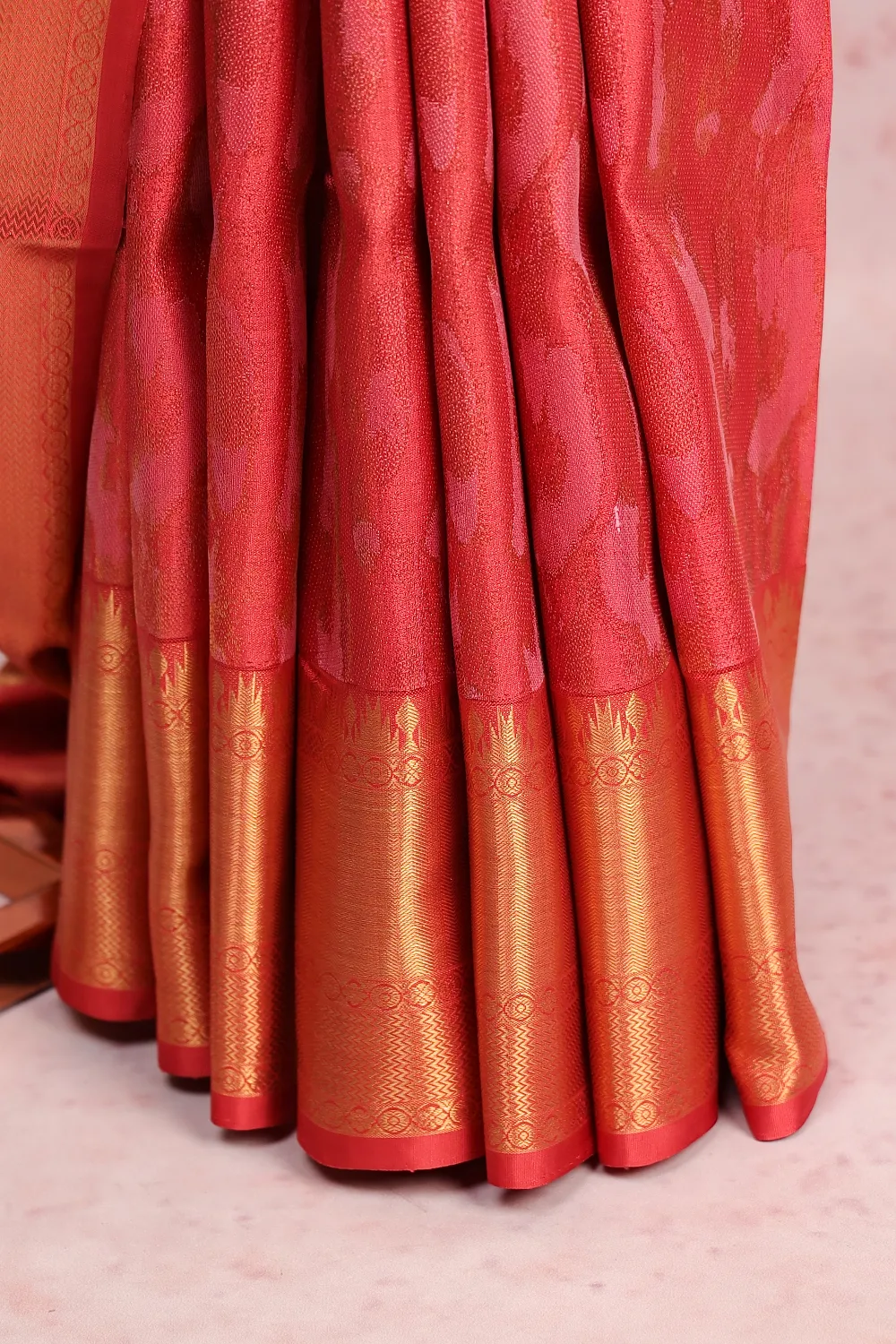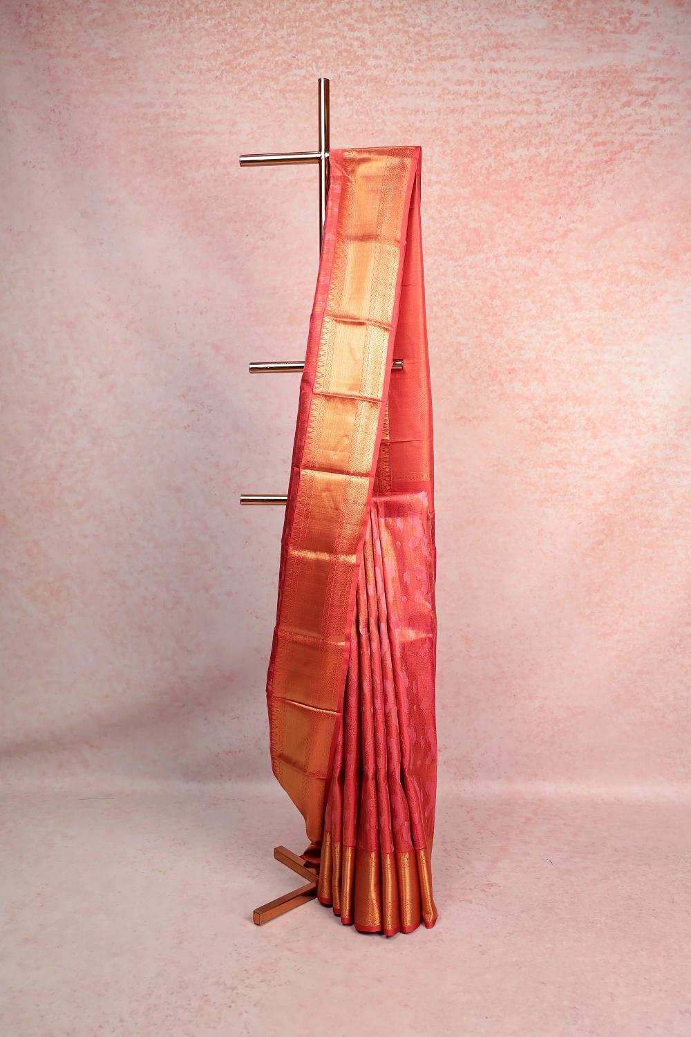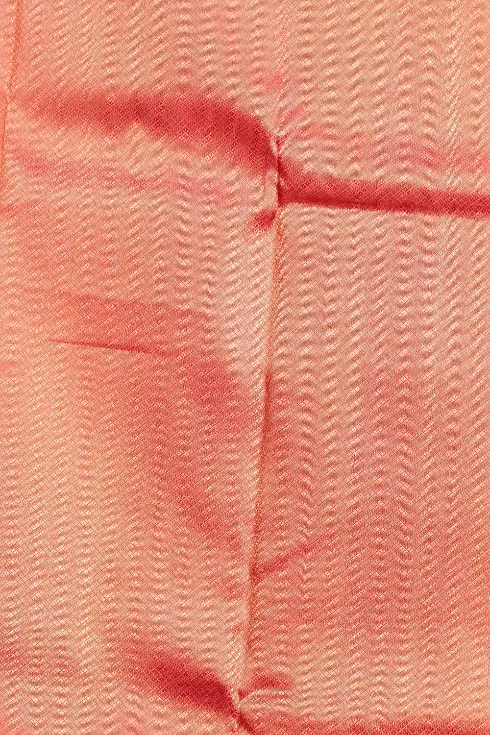 Peach Kancheepuram Silk Brocade Saree with Designer Border. Includes Unstitched Blouse