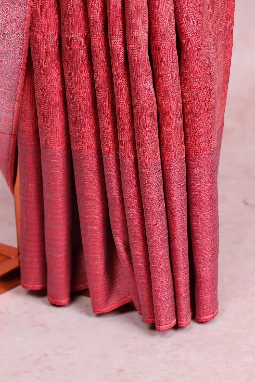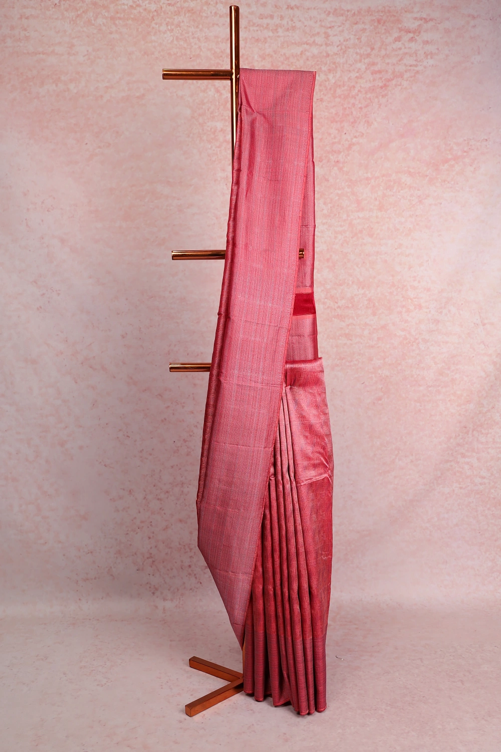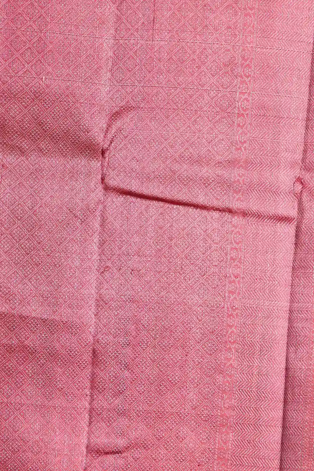 Peach Kancheepuram Silk Self Design Saree With Designer Border. Includes Un Stitched Blouse