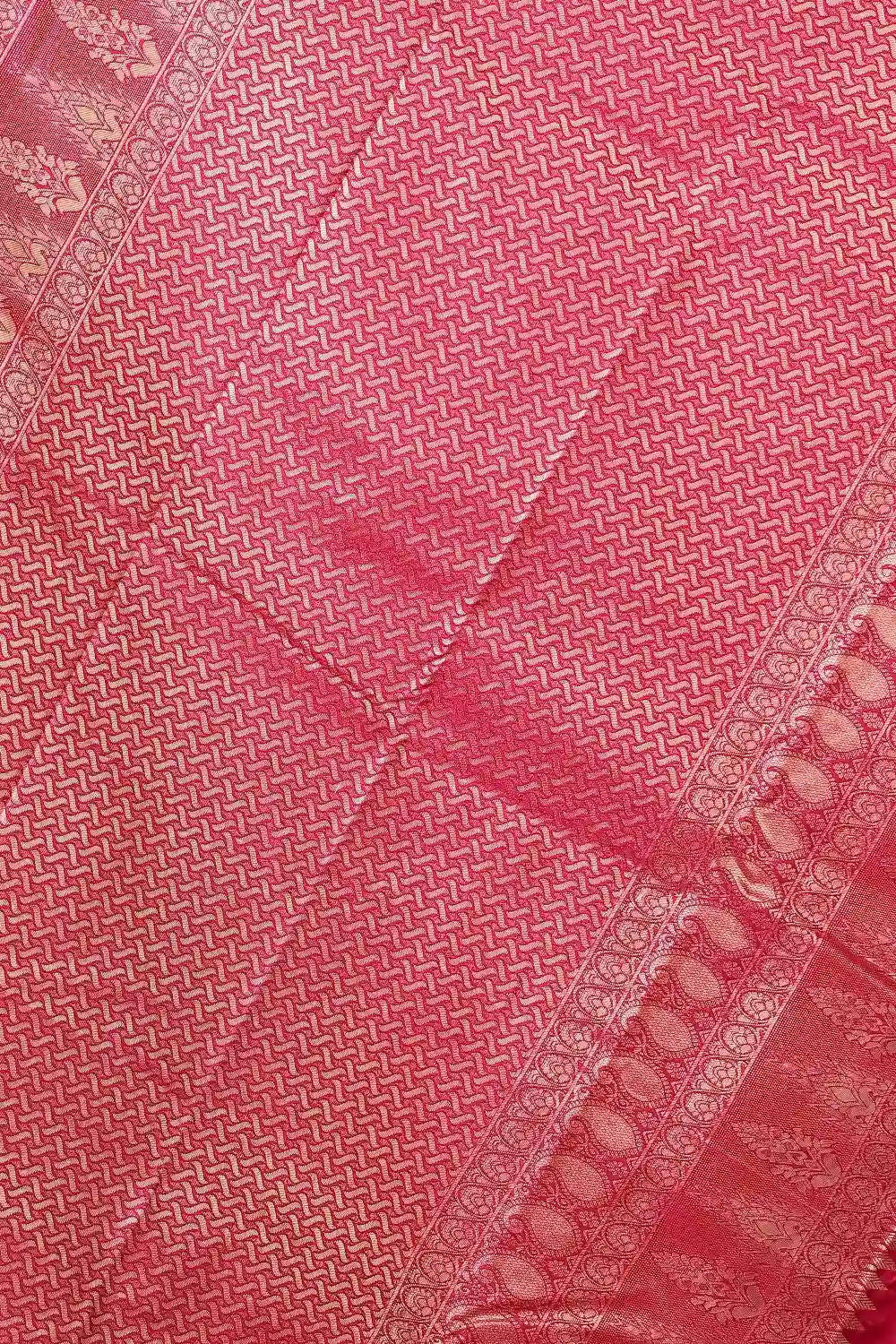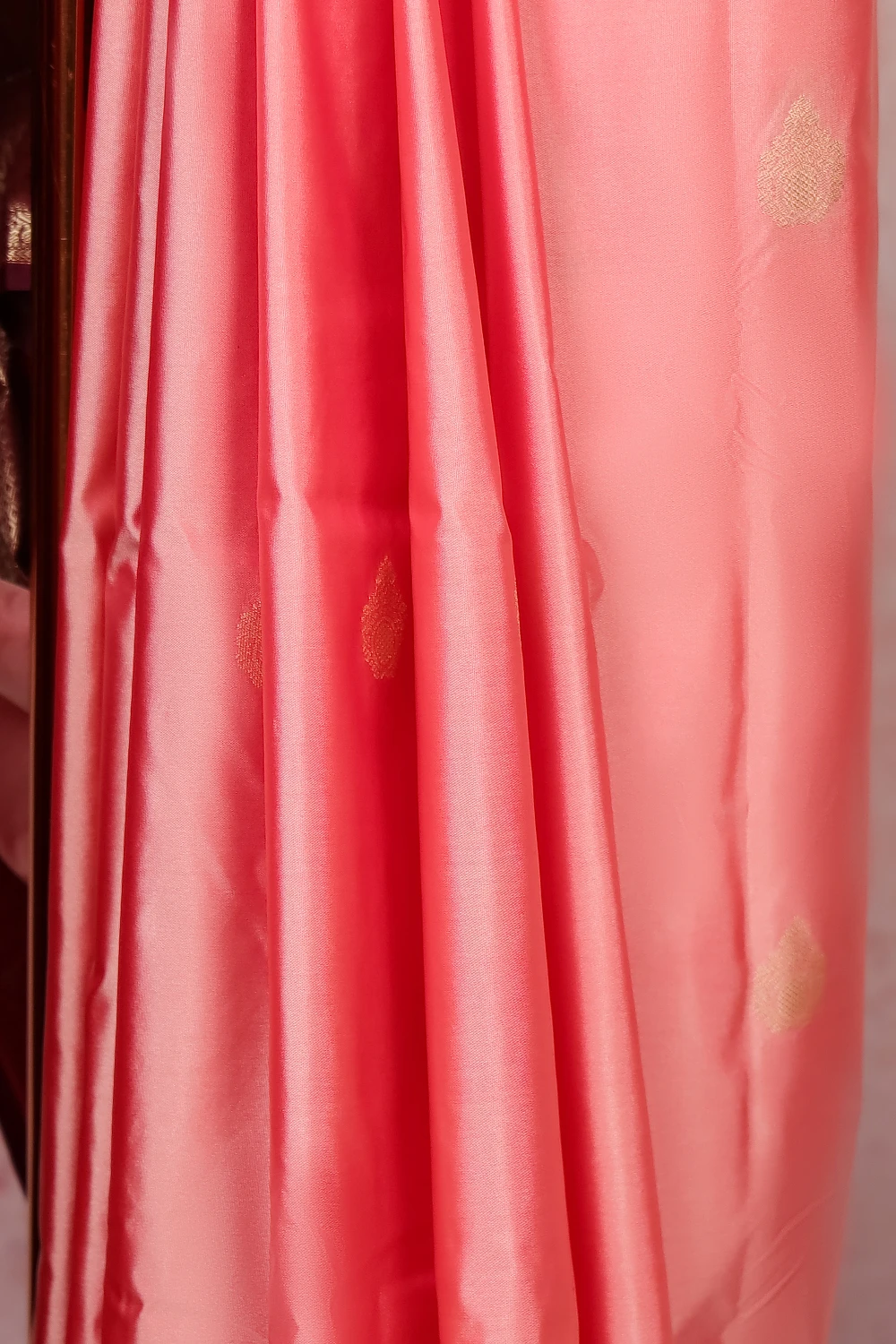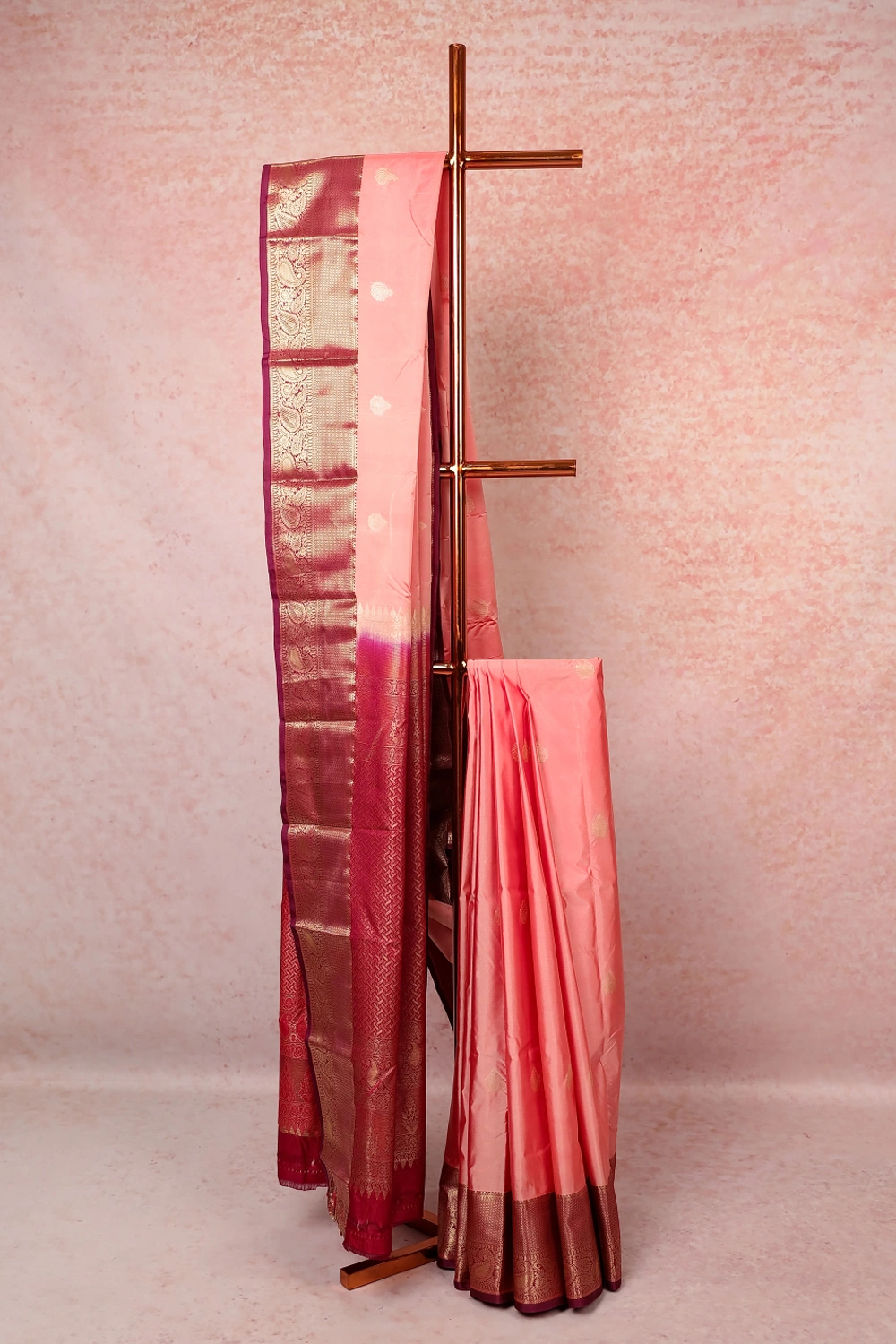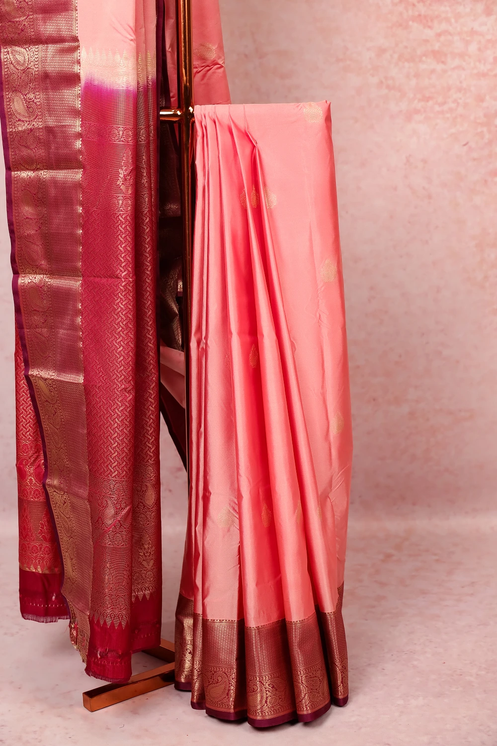 Peach Kanchi Soft Silk Butta Saree with Designer border. Includes Unstitched Blouse