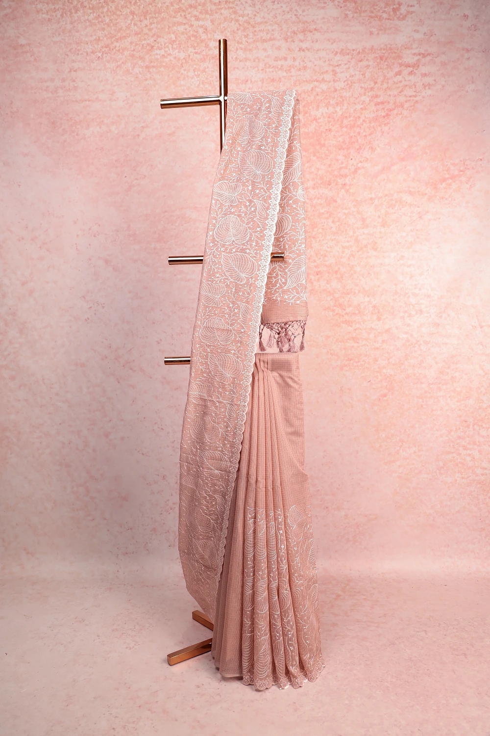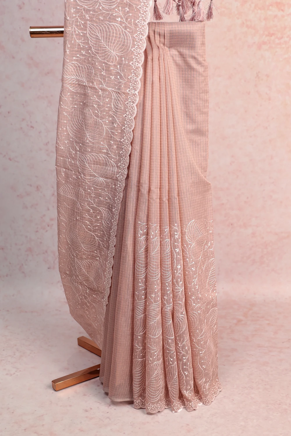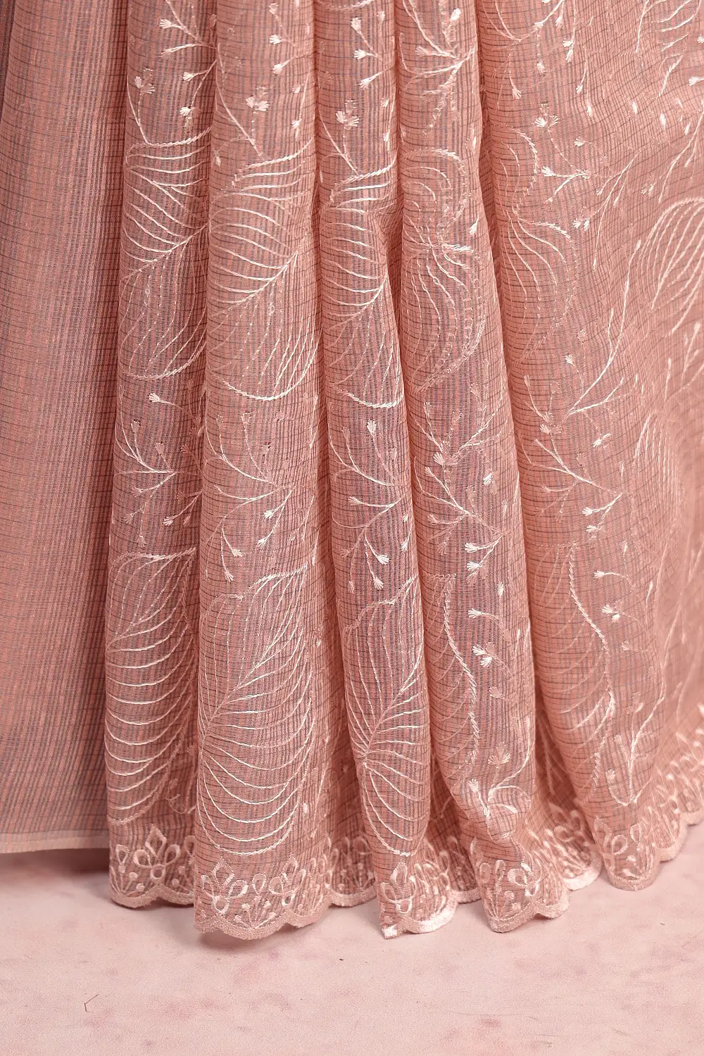 Peach Kota Embroidary Saree with Self Border. Includes Un stitched Blouse