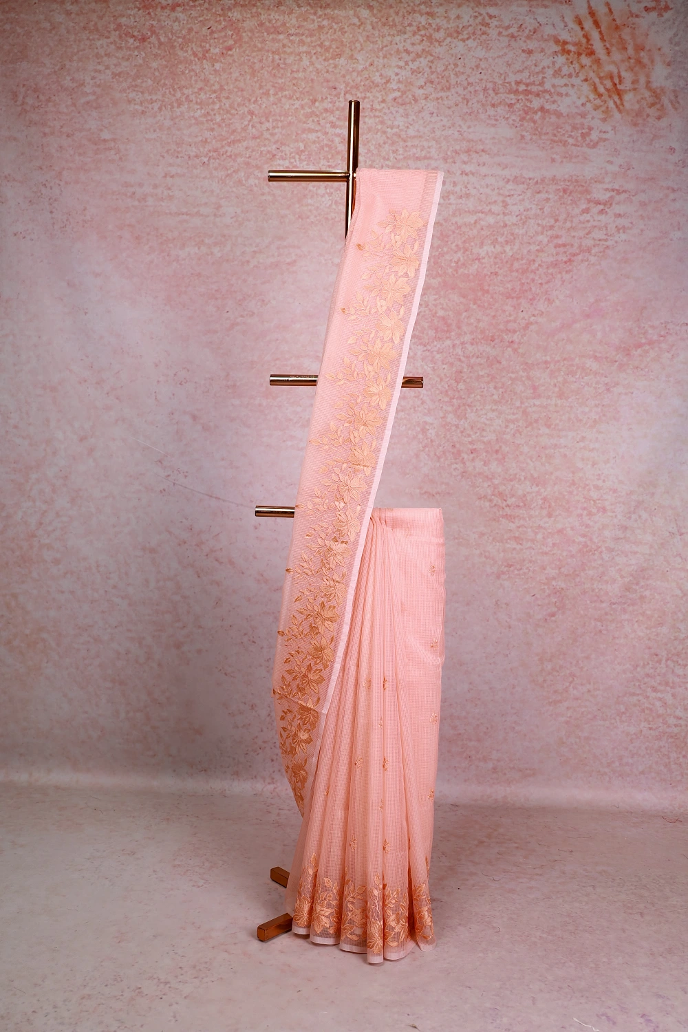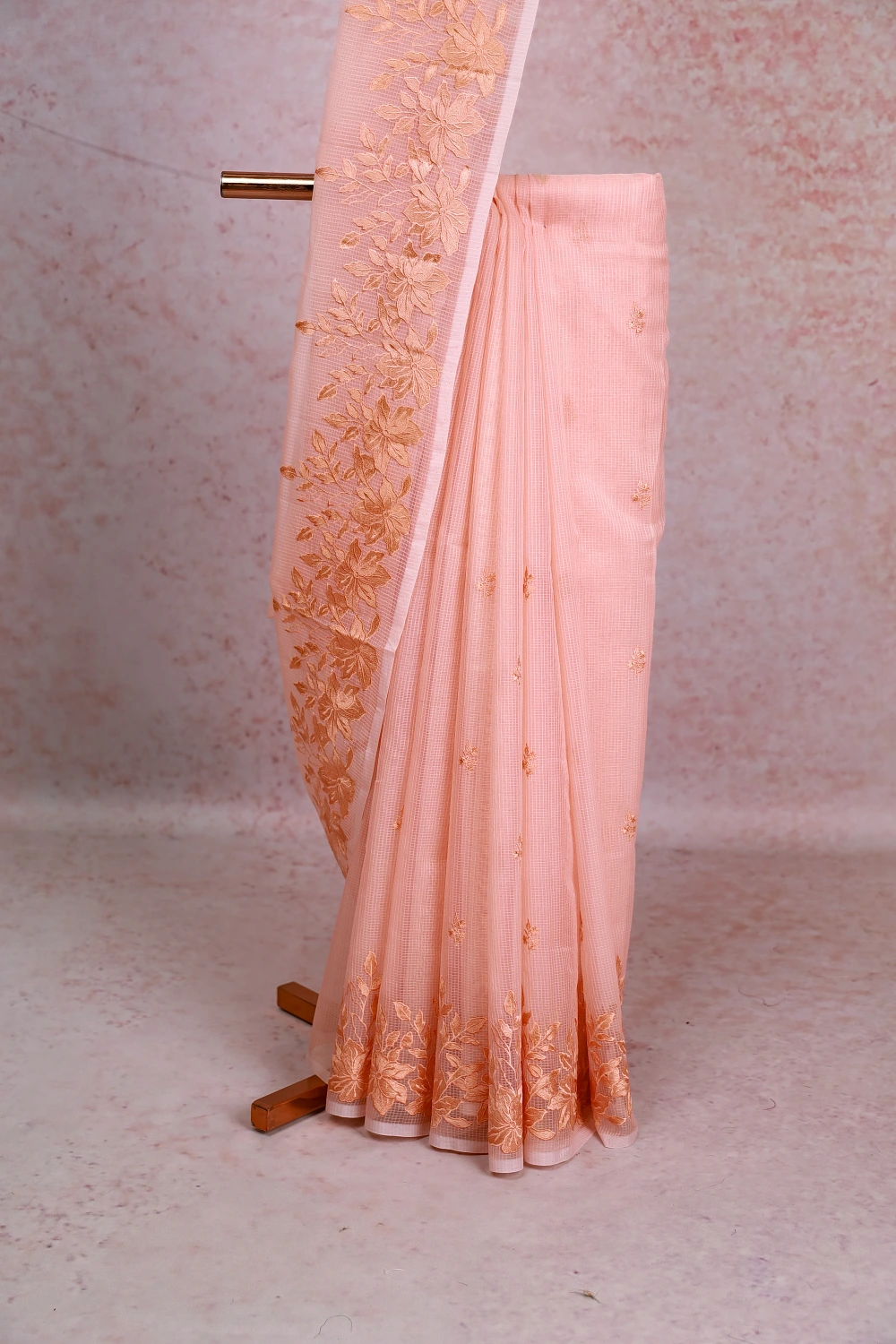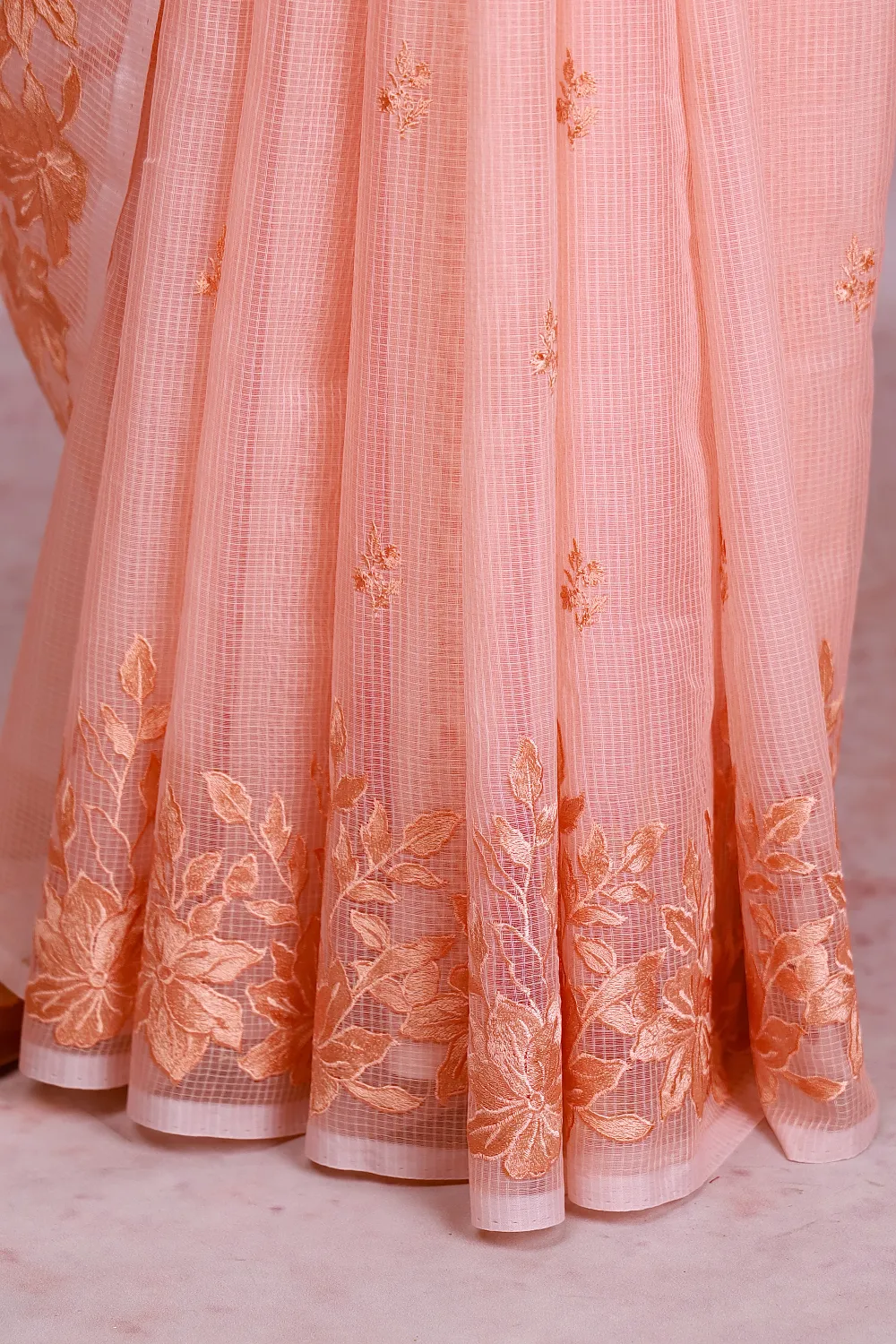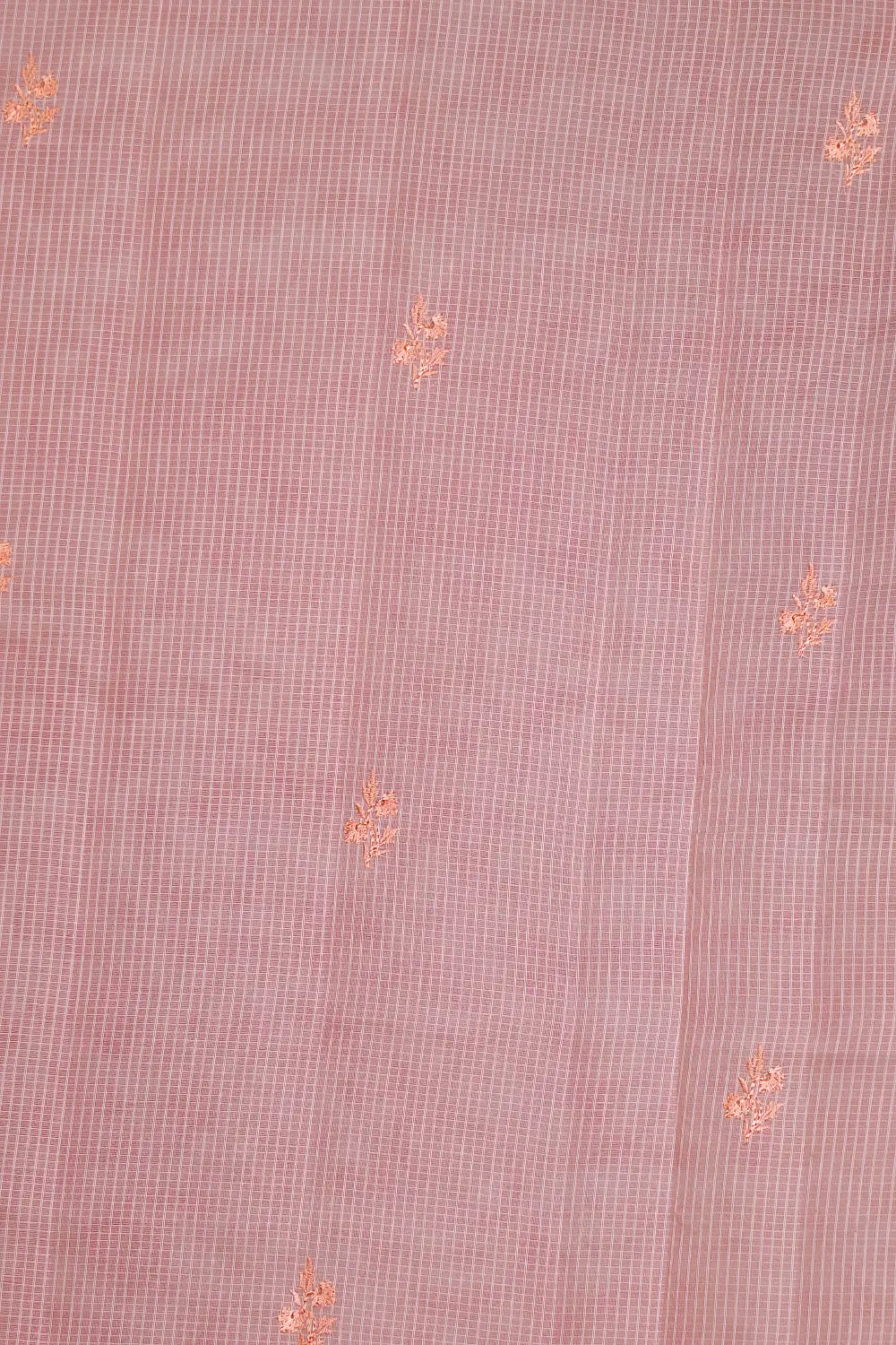 Peach Net Kota Thread Butta Saree With Thread Border. Includes Unstitched Blouse