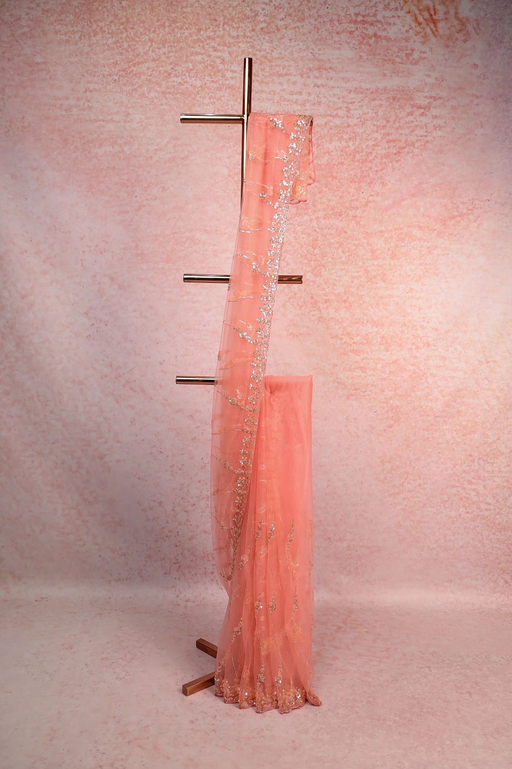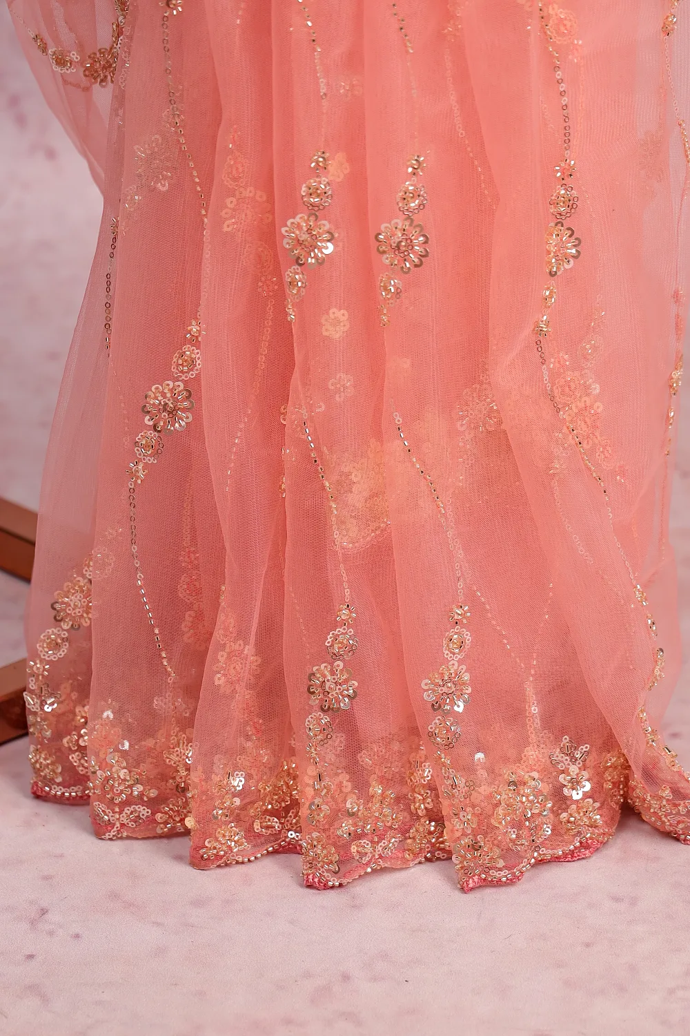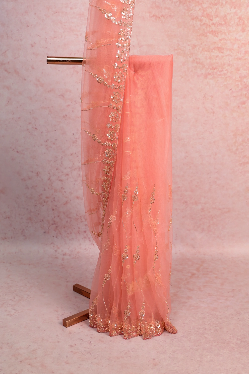 Peach Net Saree