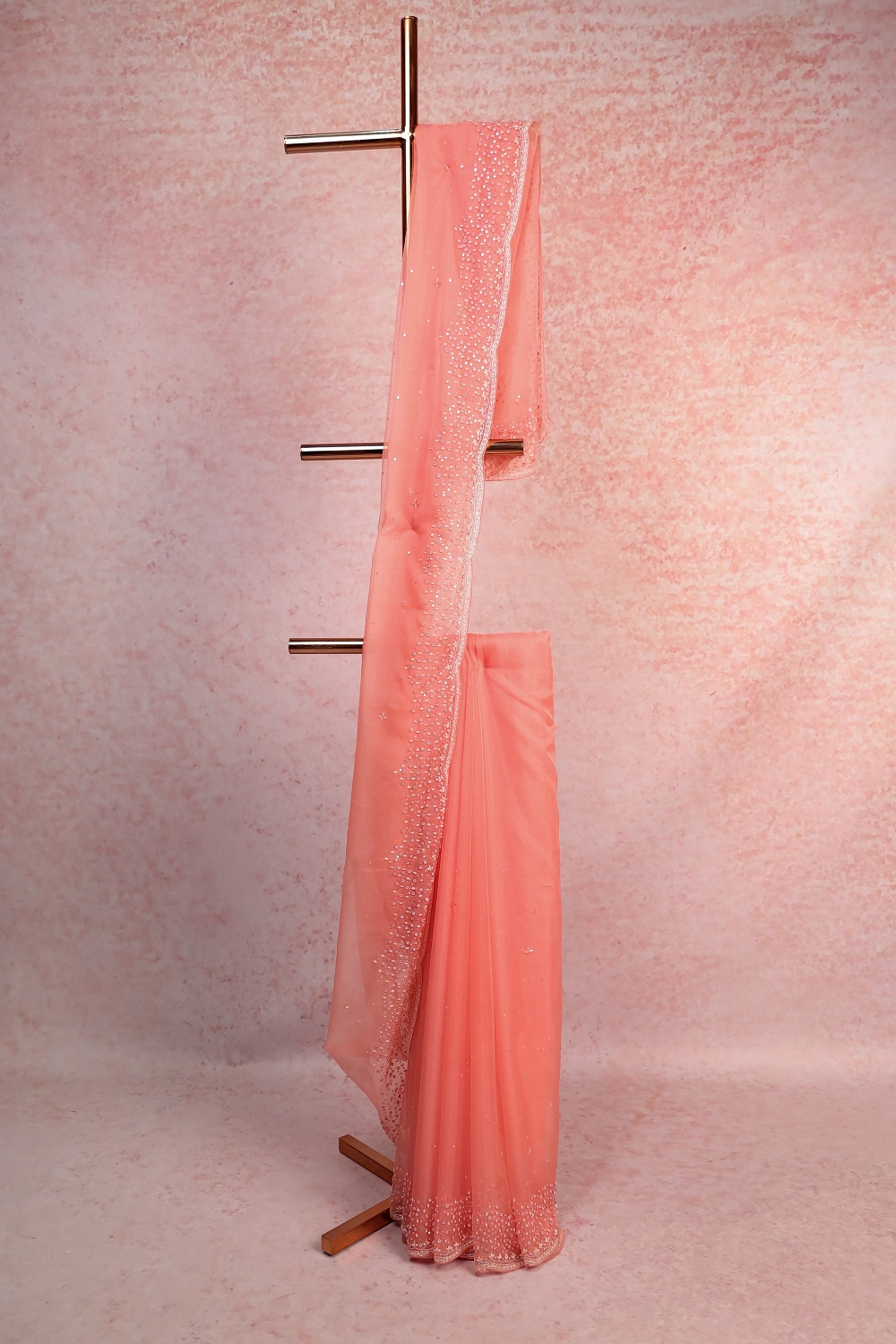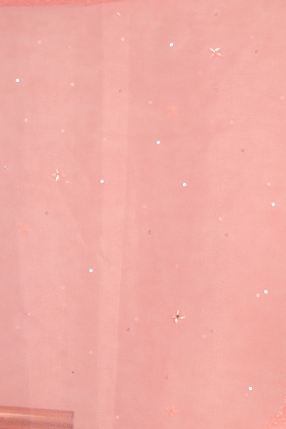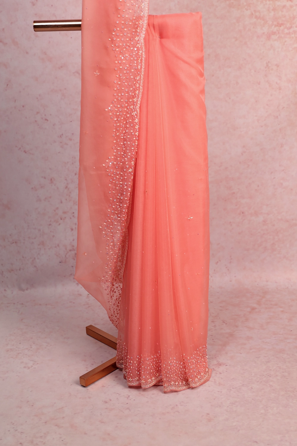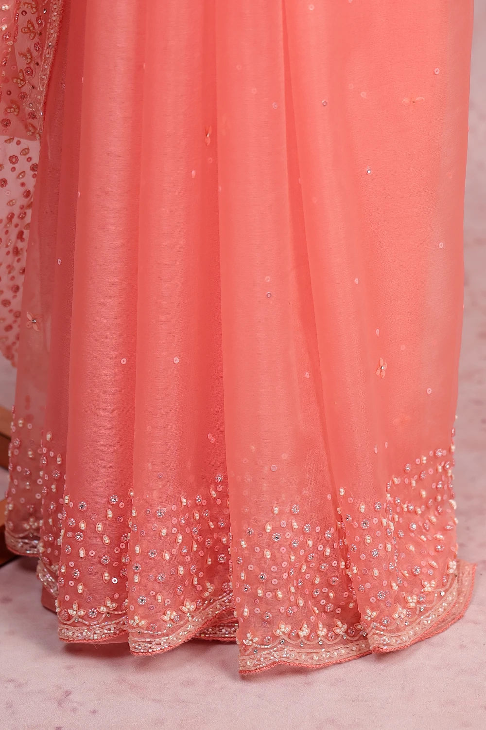 Peach Organza Sequines Saree with Sequines Border. Includes Un stitched Blouse