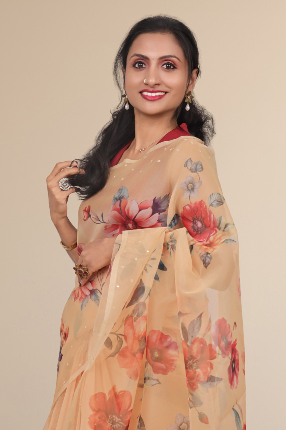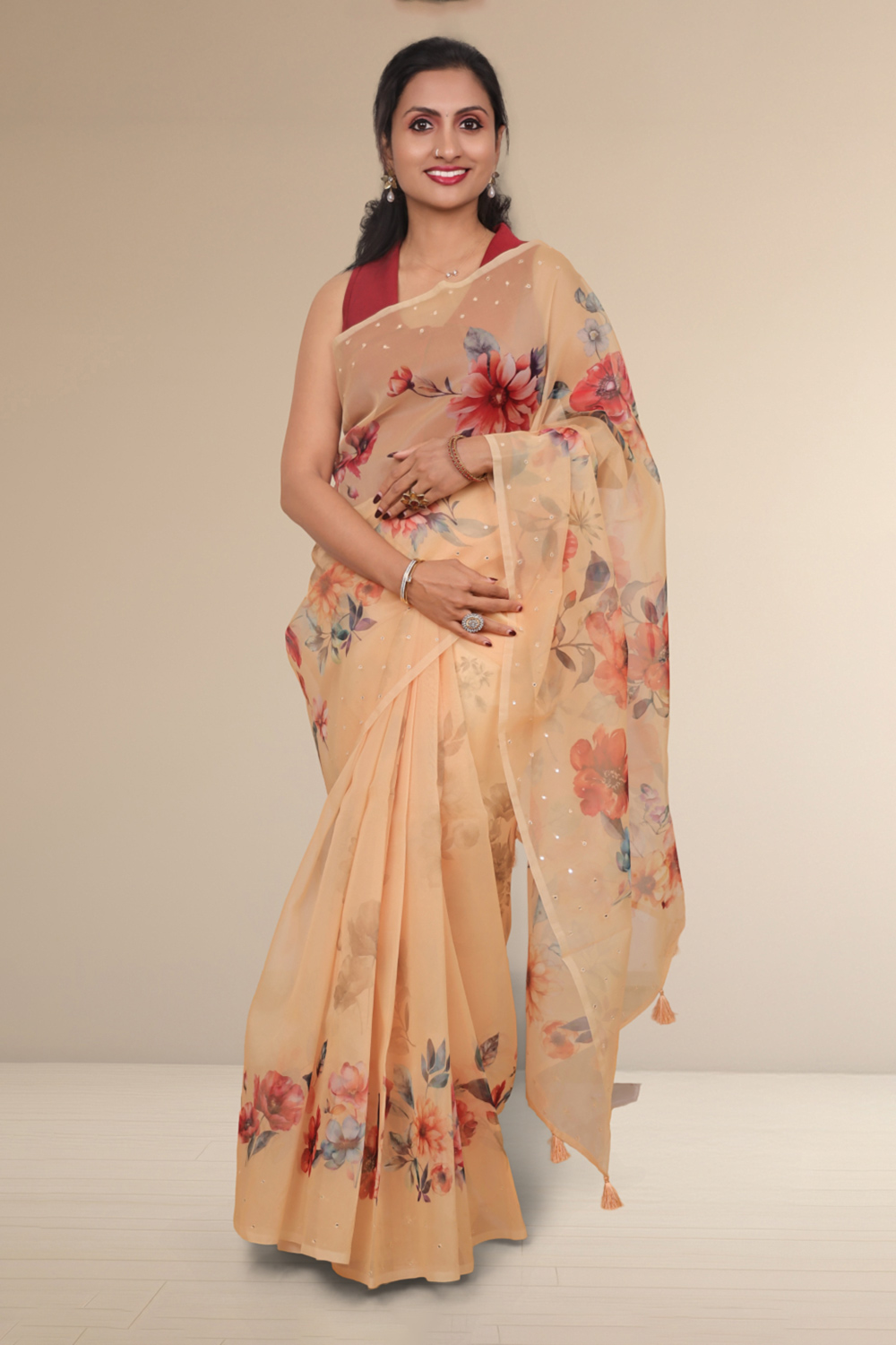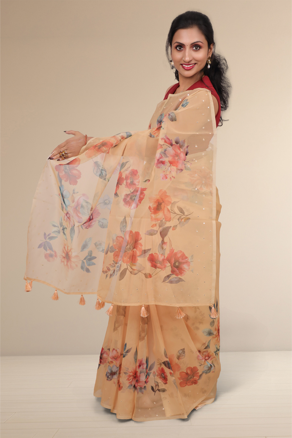 Peach Organza Saree
