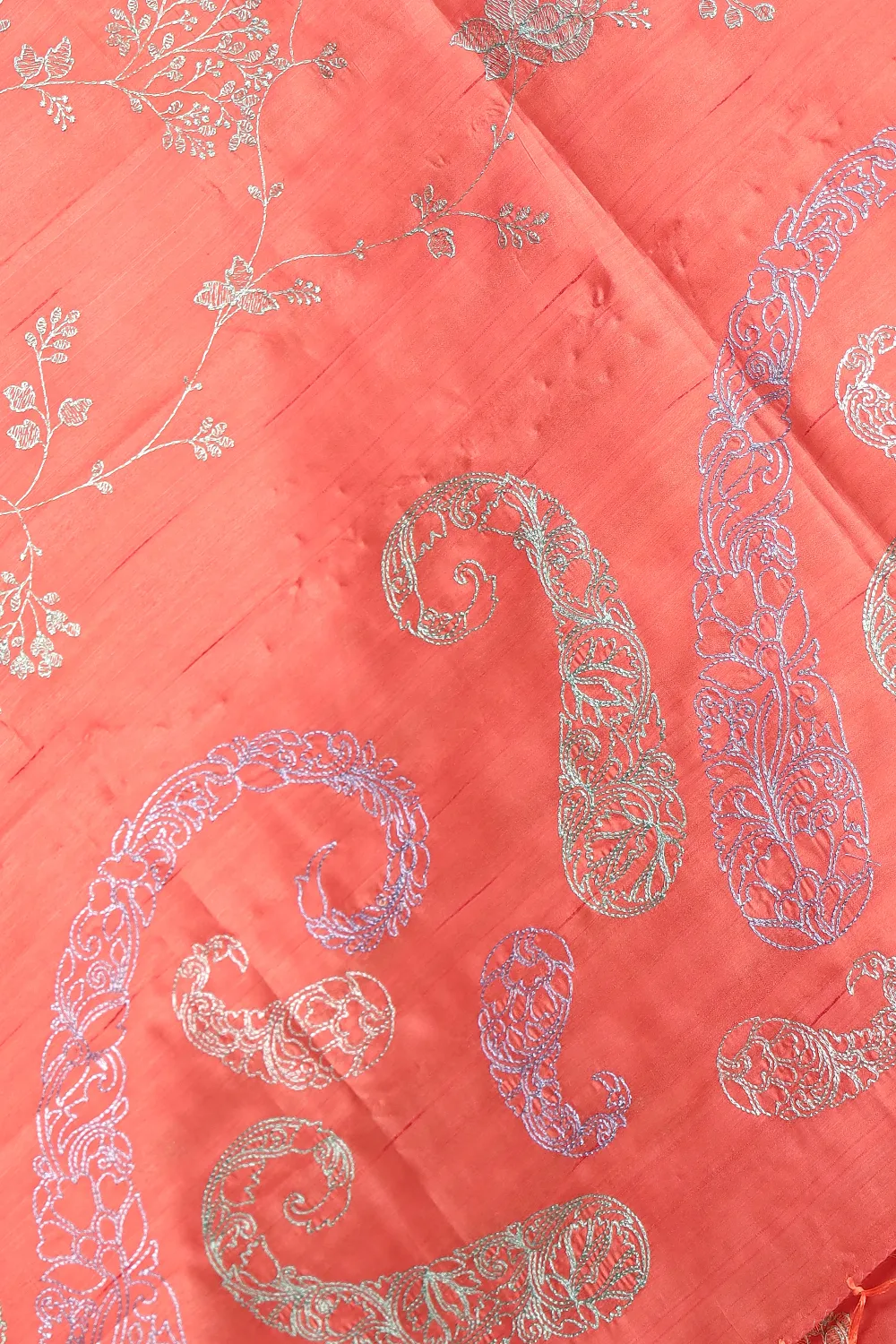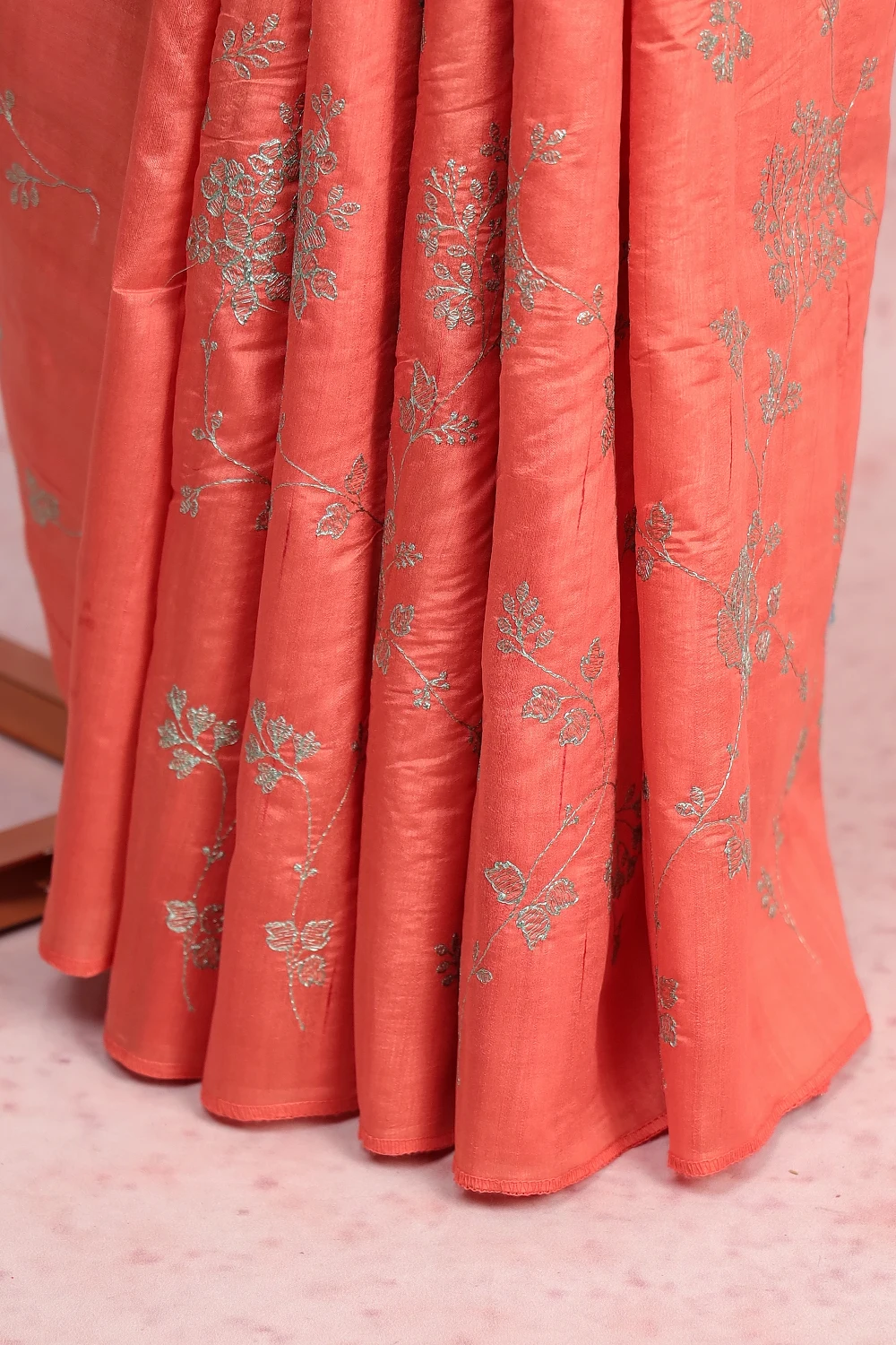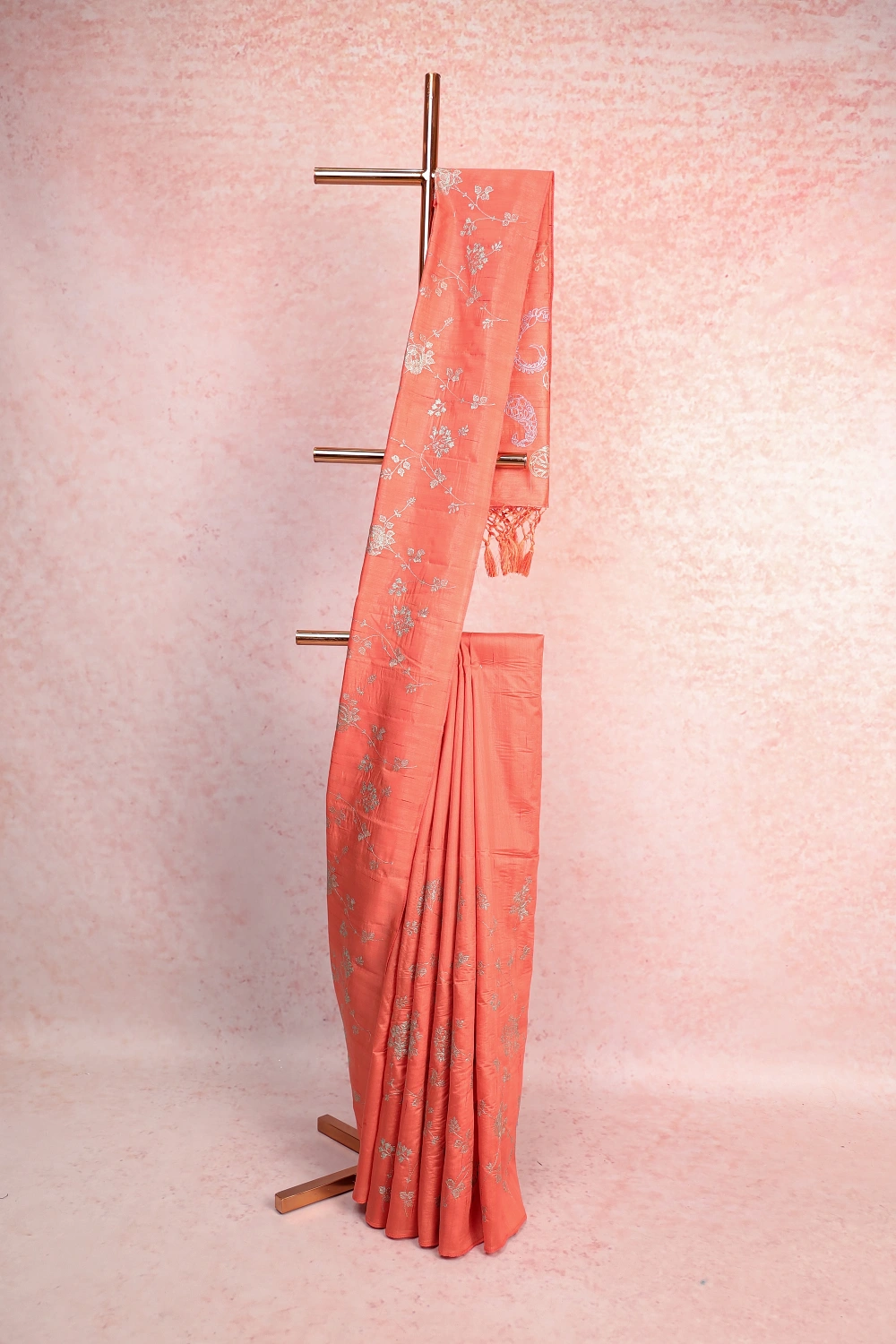 Peach Semi Tussar Thread Design Saree with Piping Border. Includes Unstitched Blouse