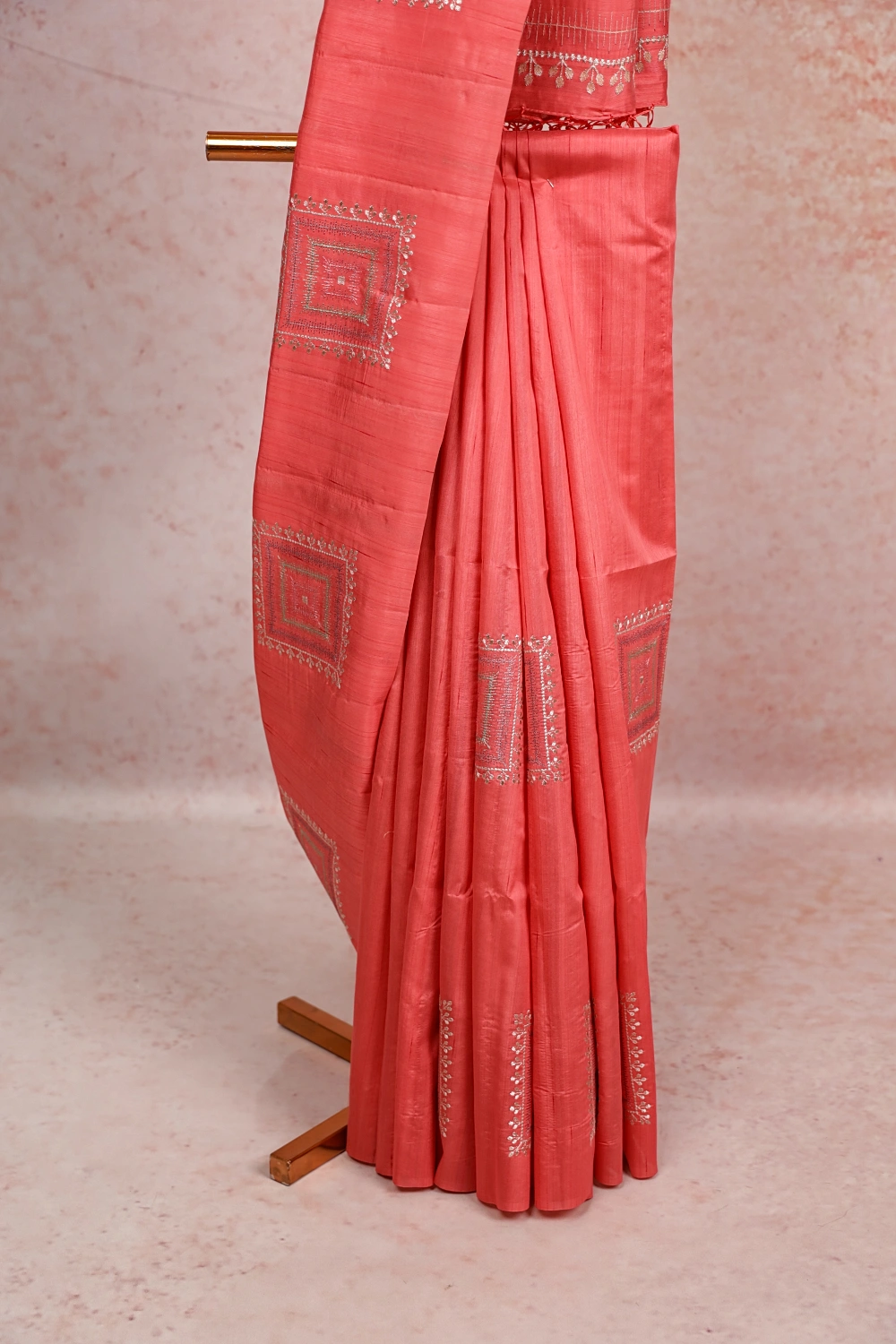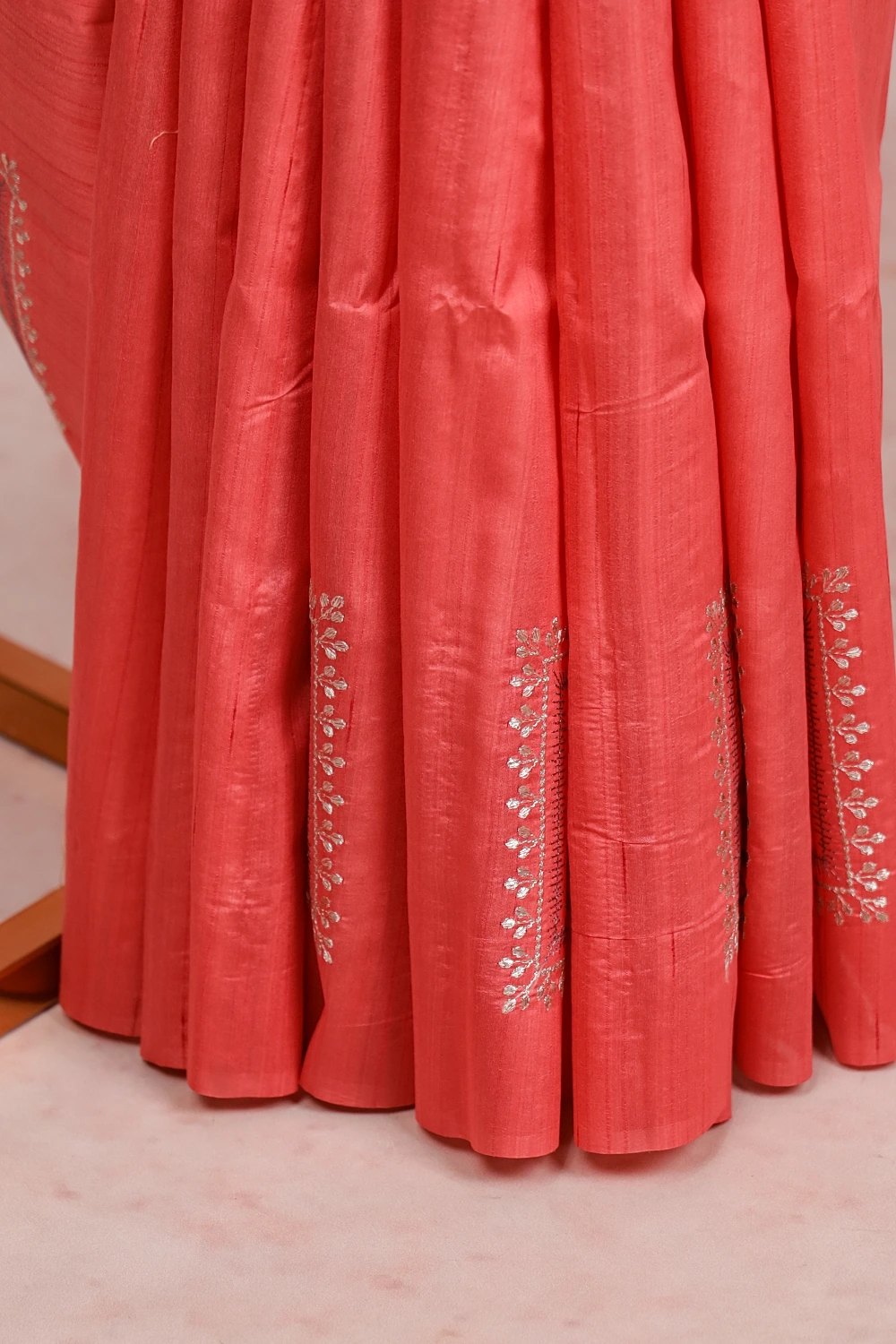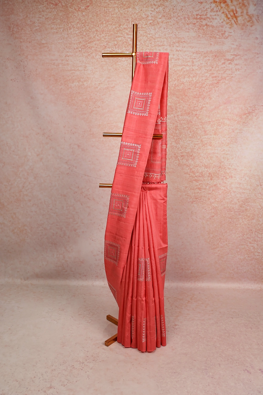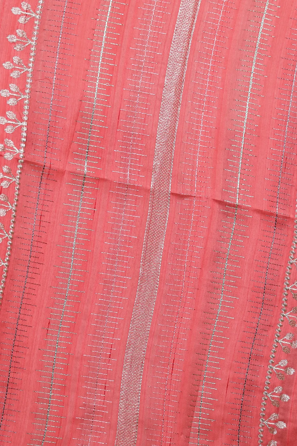 Peach Semi Tussar Zari Work Saree With Zari Border. Includes Unstitched Blouse