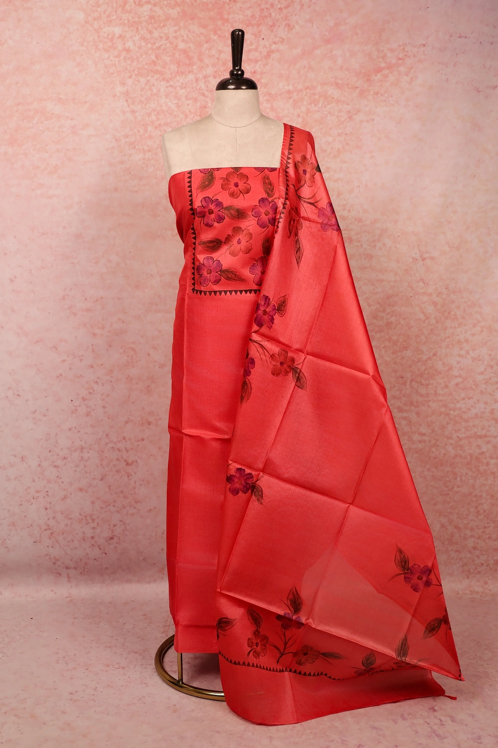 Peach Tussar Plain Body Unstitched Churidhar Material