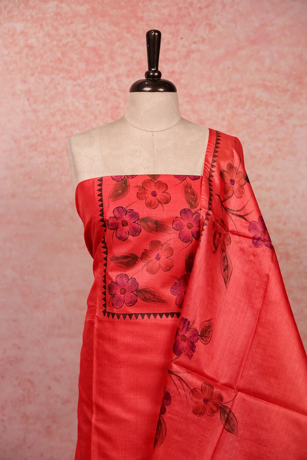 Peach Tussar Plain Body Unstitched Churidar Material. Includes Dupatta.