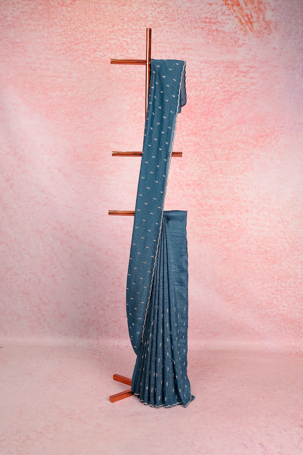 Peacock Blue Crush Organza Saree