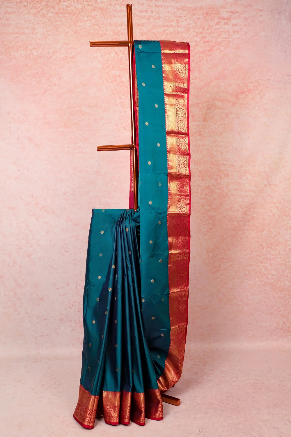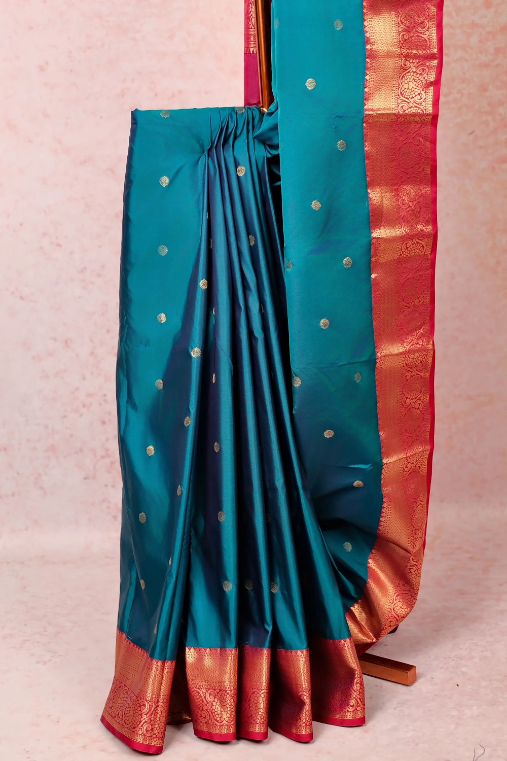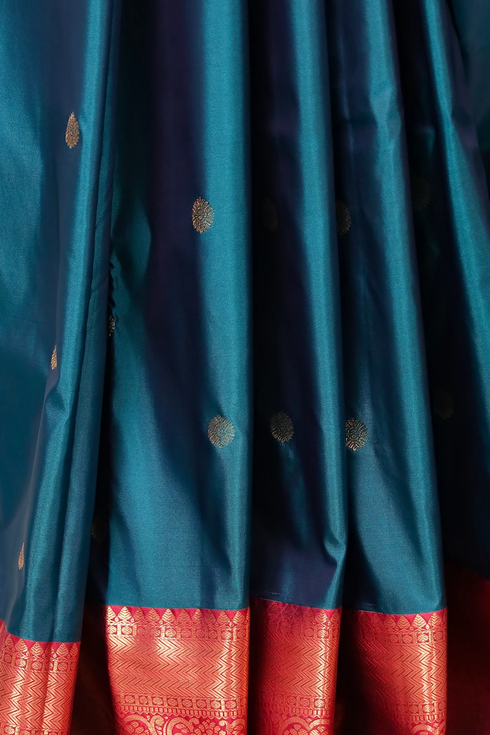 Peacock Blue Kanchi Soft Silk Saree with Unstiched Blouse Piece
