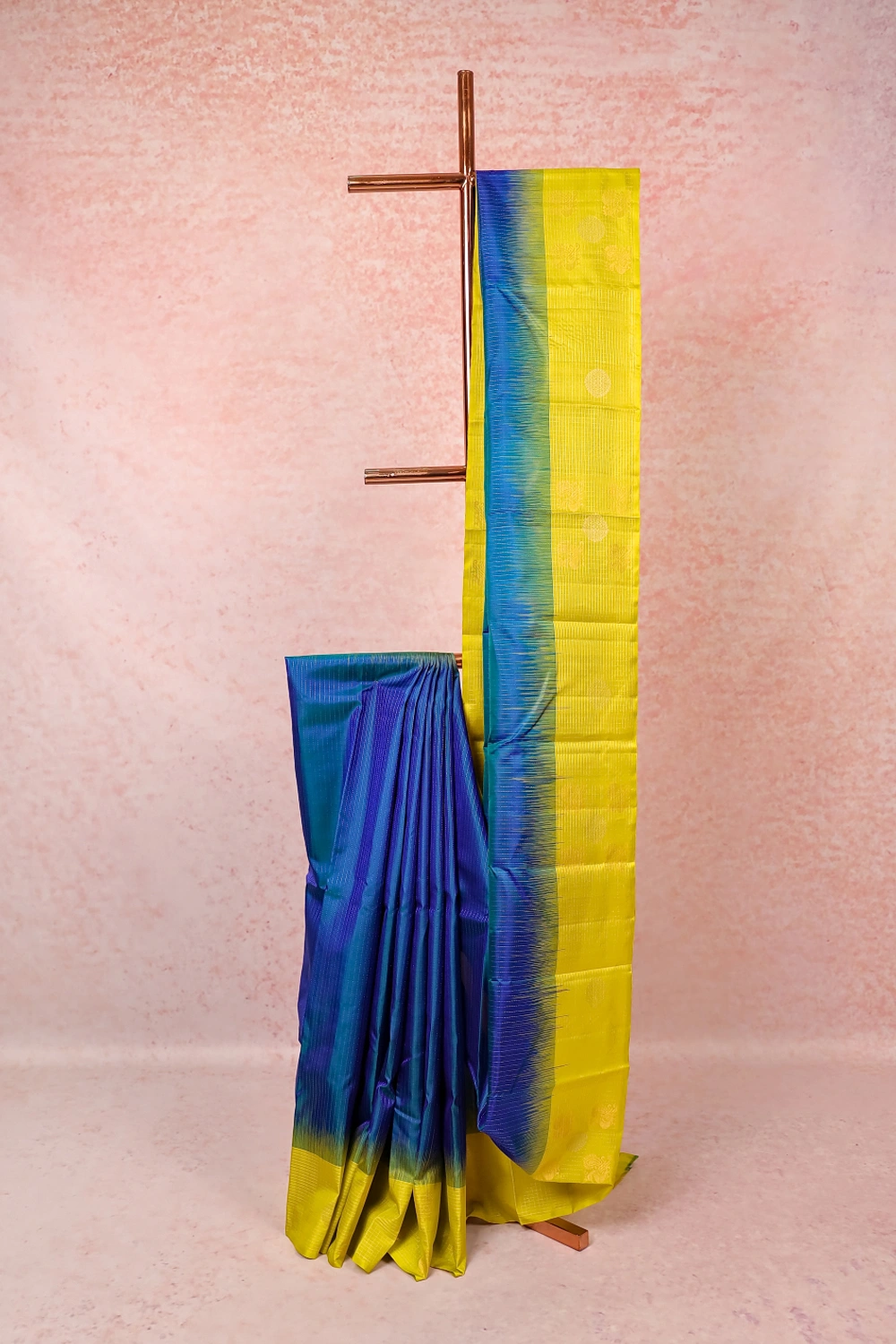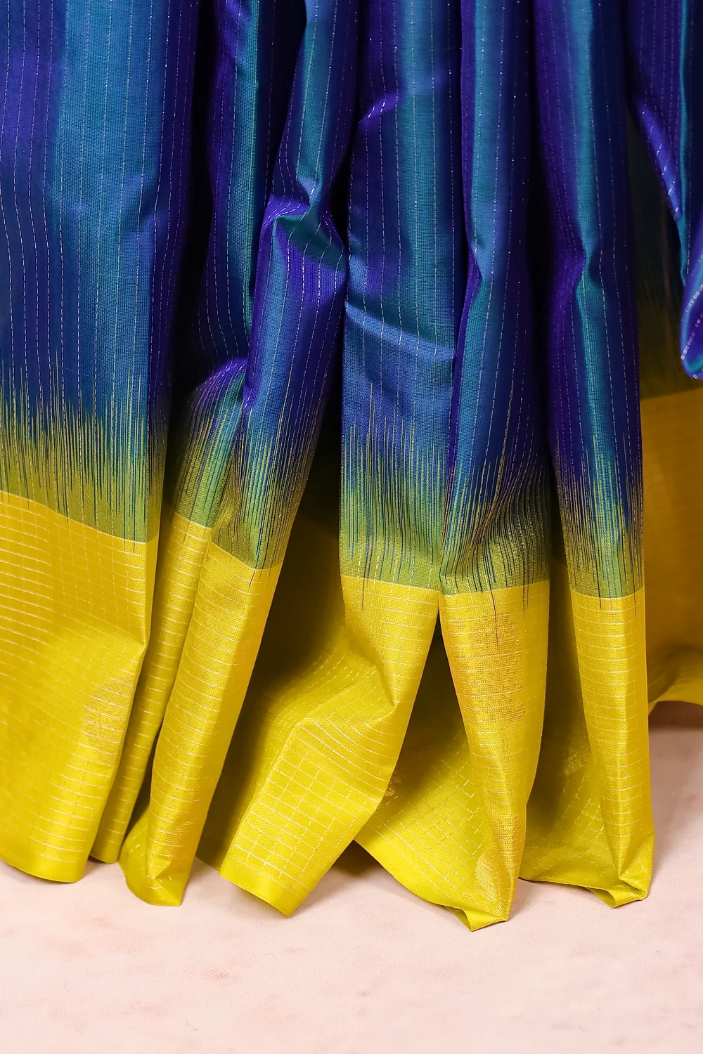 Peacock Blue Kanchi Soft Silk Lines Saree with Designer border. Includes Unstitched Blouse
