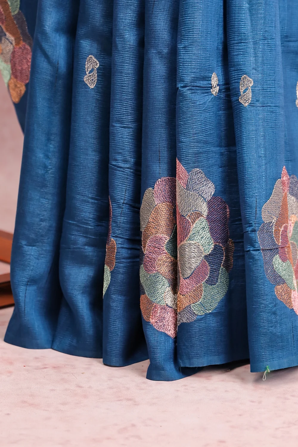 Peacock Blue Semi Tussar Saree