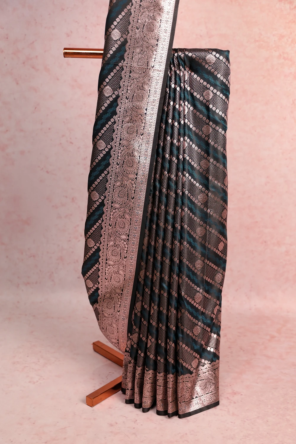 Peacock Green Semi Banarasi Saree