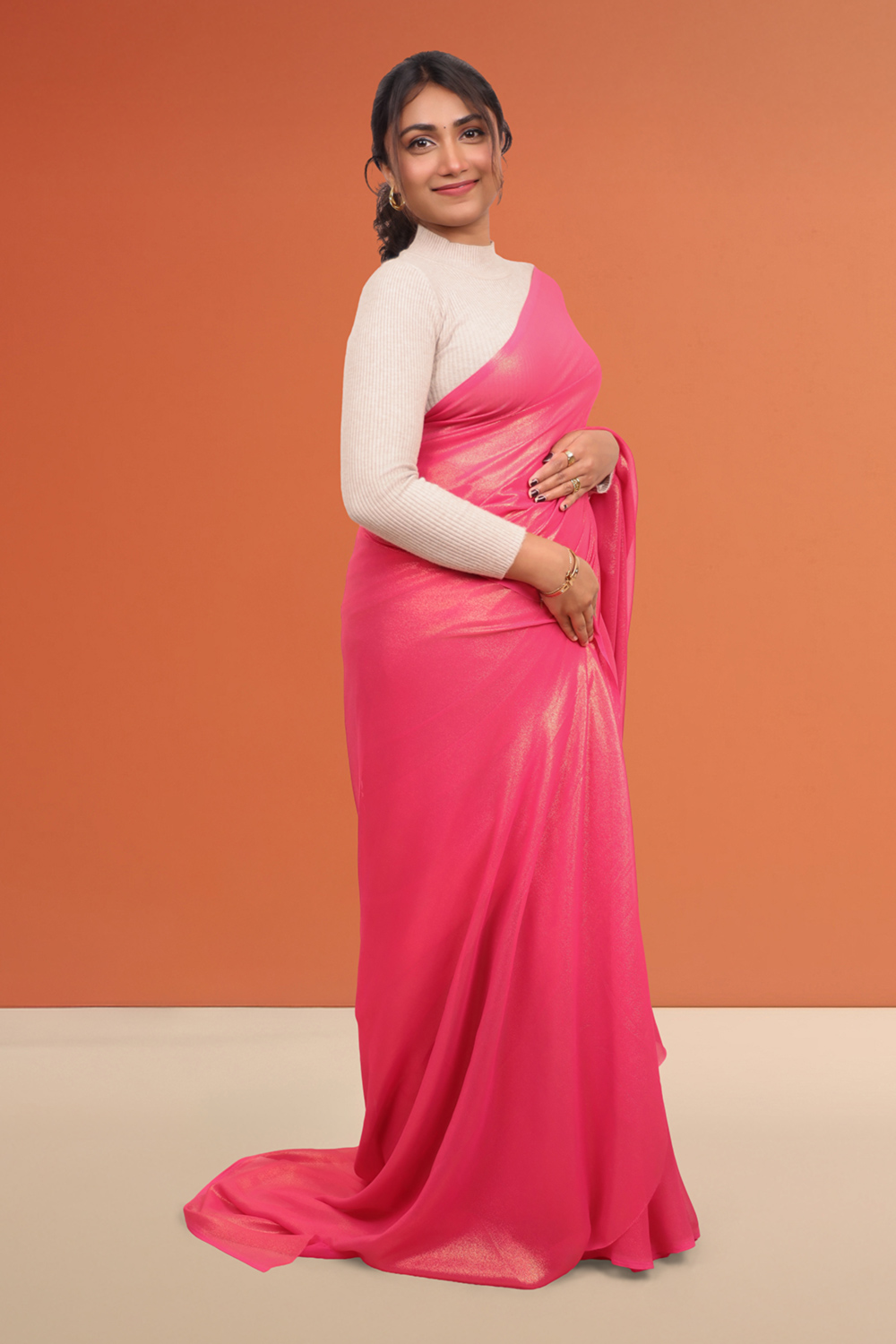 Pink Chiffon Saree