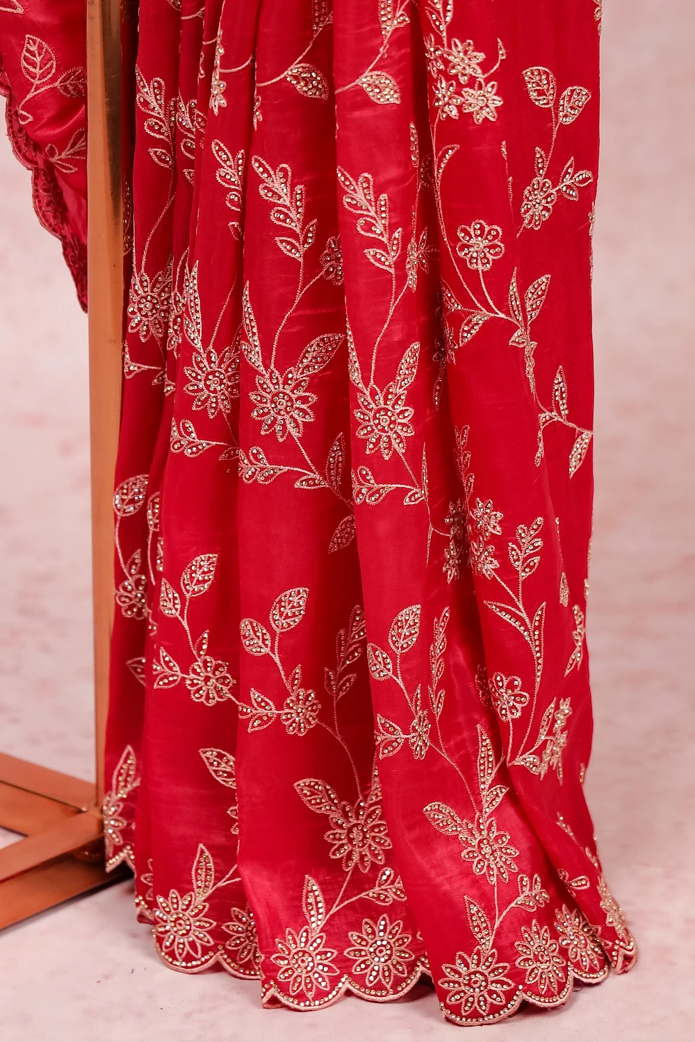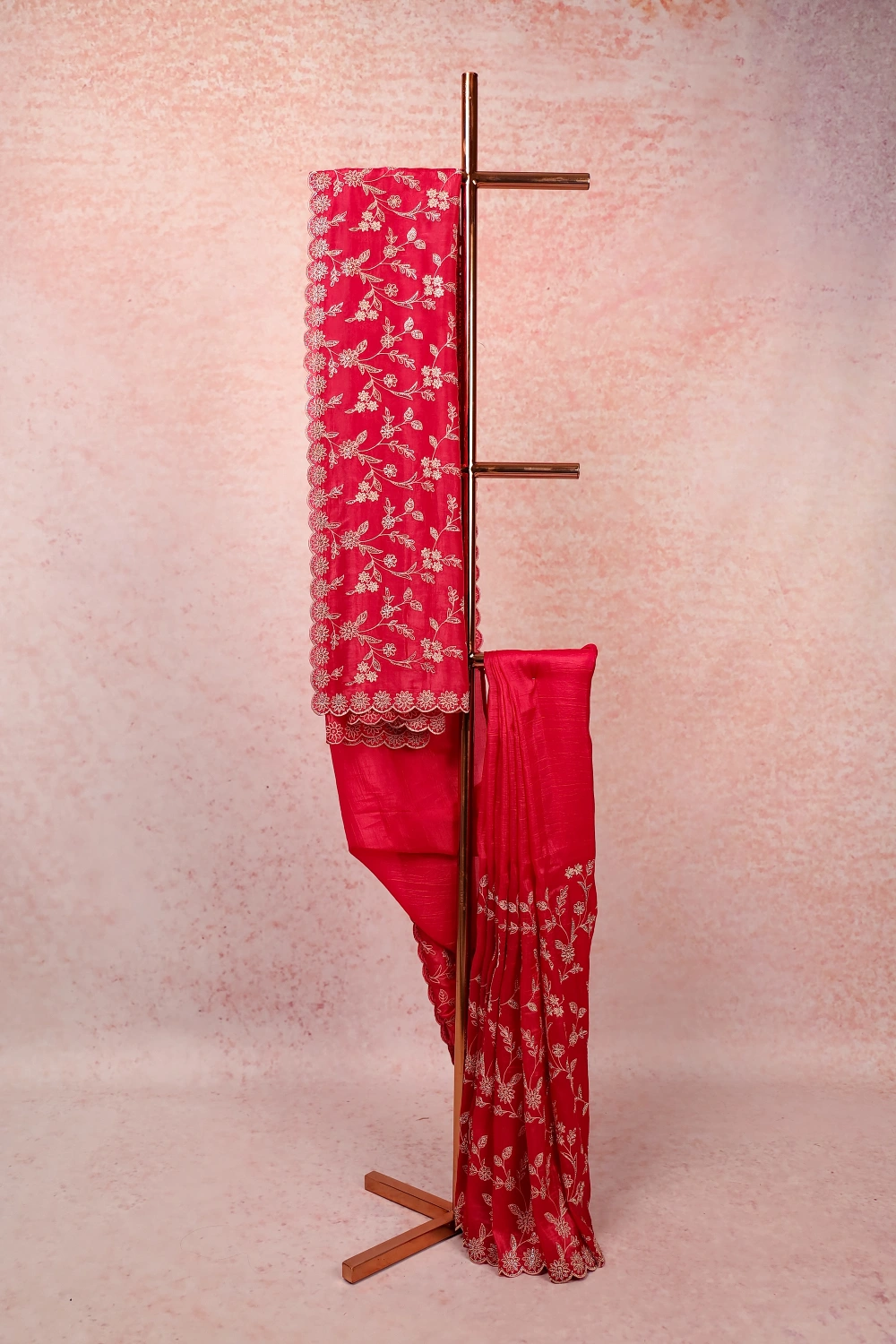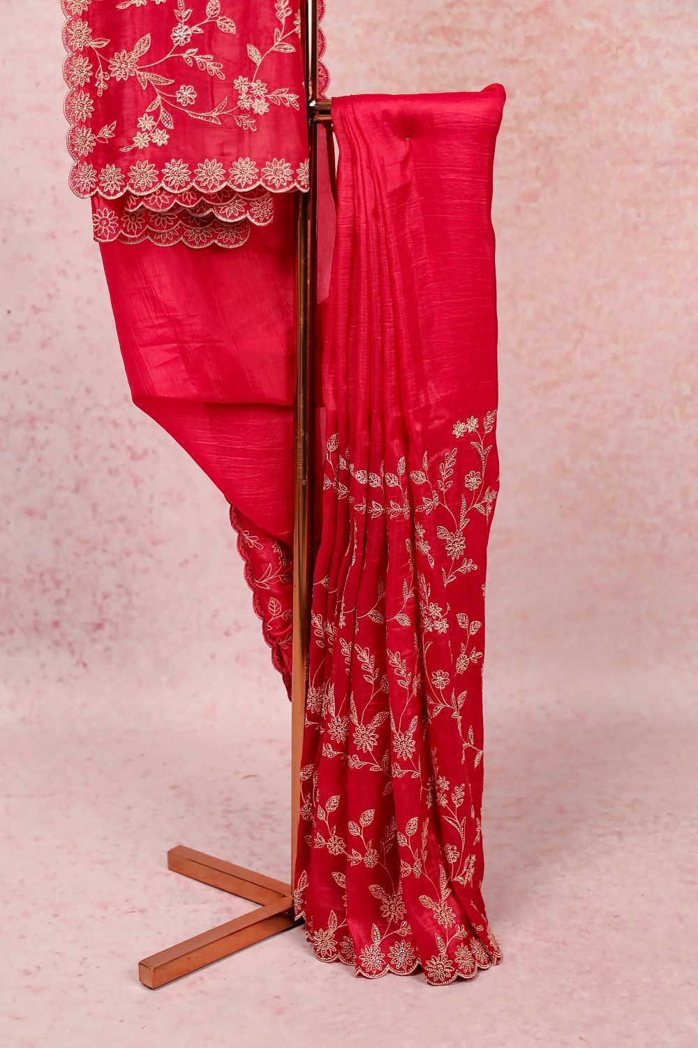 Pink Crush Organza Embroidery With Preal Work Saree with Designer Border. Includes Unstitched Blouse