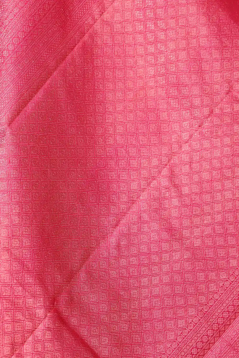 Pink Kancheepuram Silk Brocade Saree with Designer border. Includes Unstitched Blouse