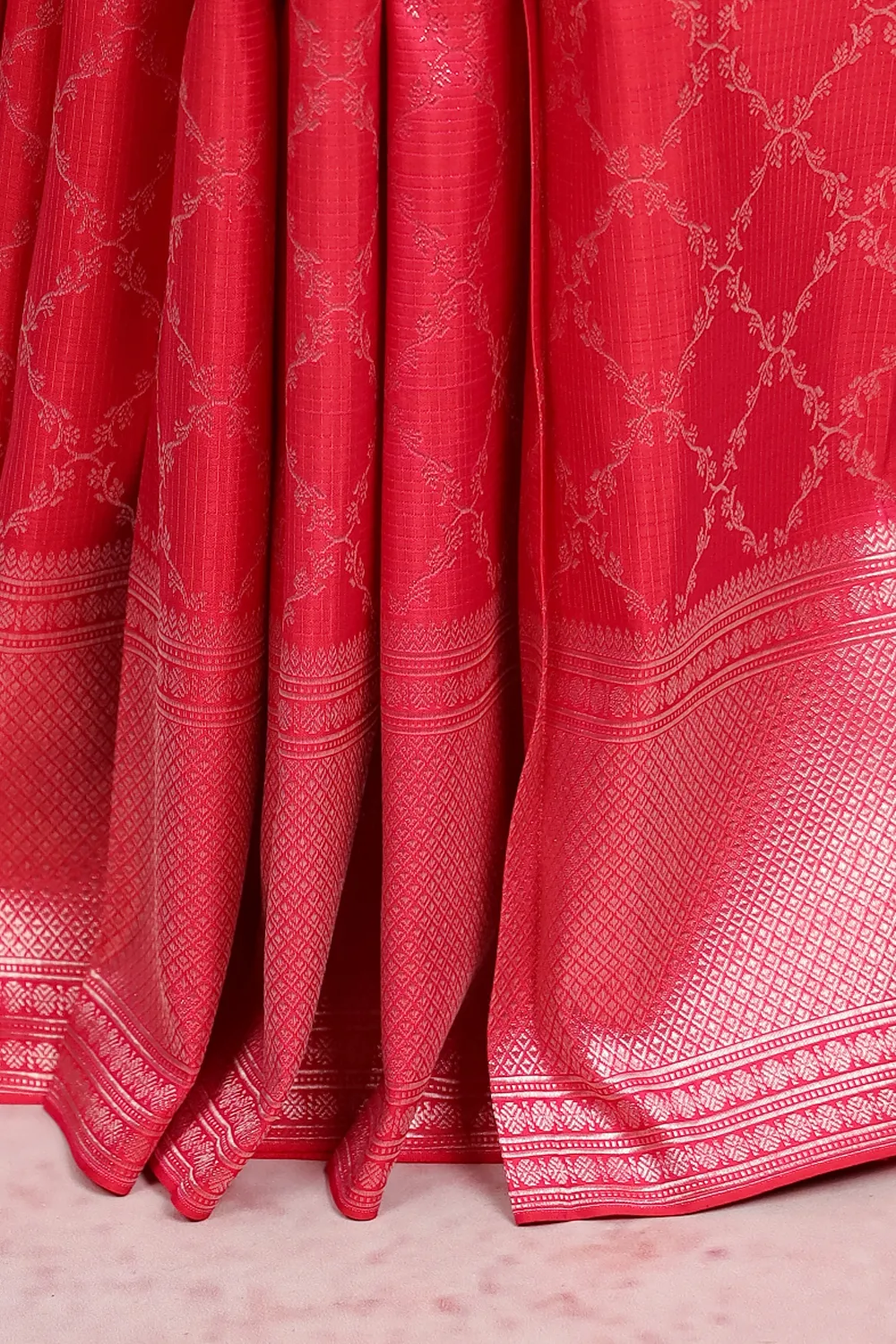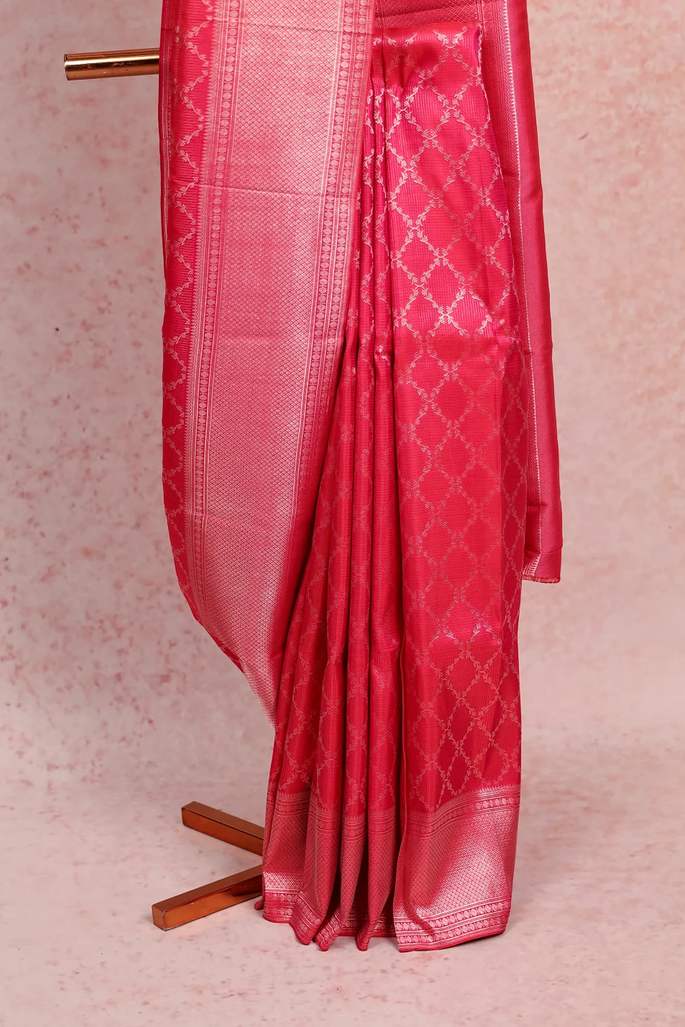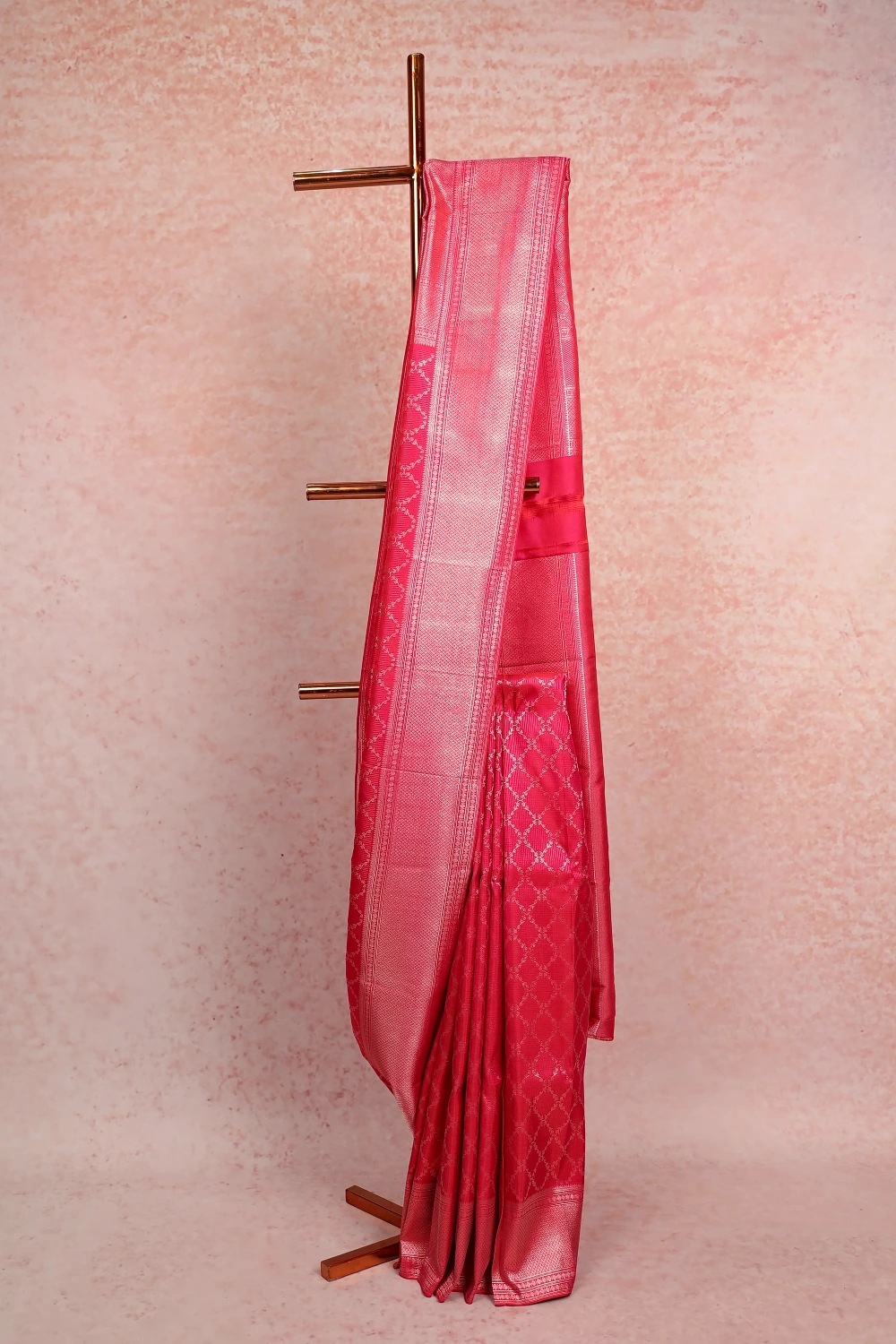 Pink Kancheepuram Silk Brocade Saree with Designer Border. Includes Unstitched Blouse