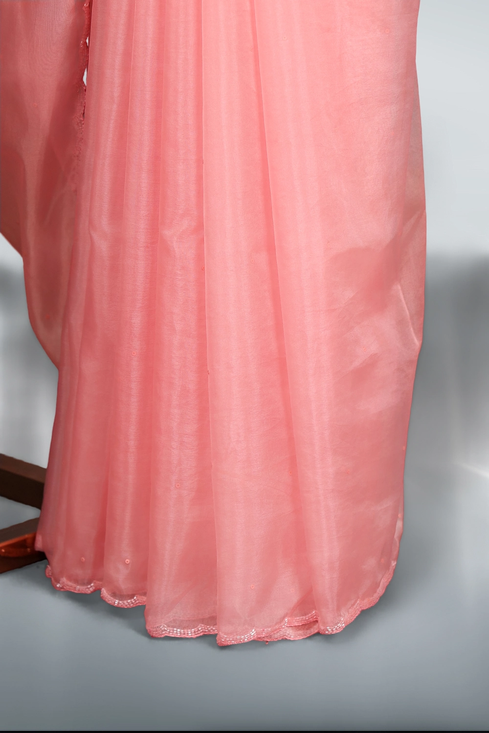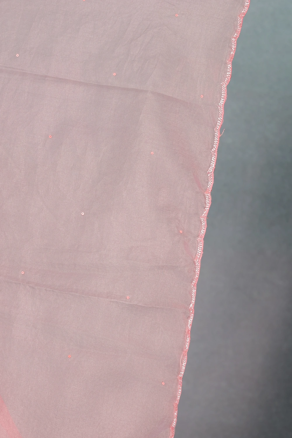 Pink Organza Sequines Saree With Scallop Border. Includes Un Stitched Blouse