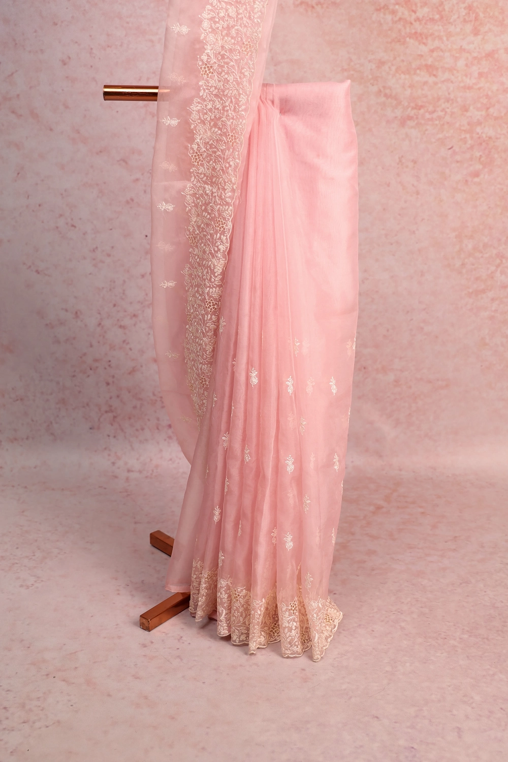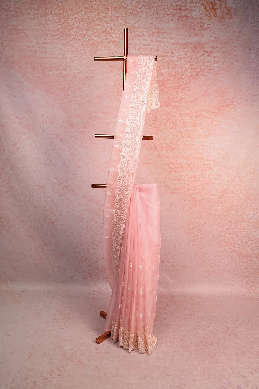 Pink Crush Thread Design Saree with Thread Border. Includes Un stitched Blouse