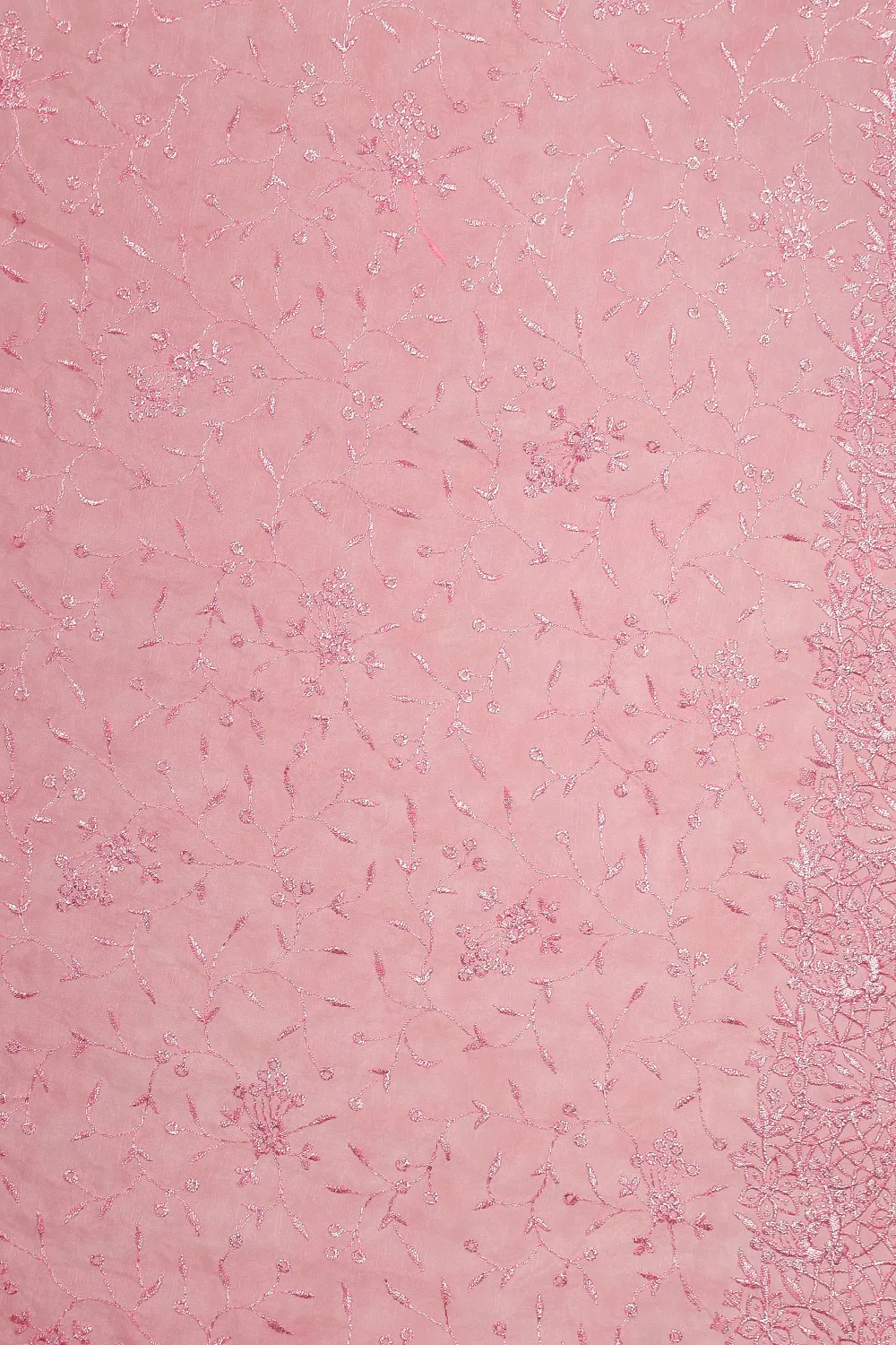 Pink Organza Thread Work Saree with Thread Work Border. Includes Unstitched Blouse
