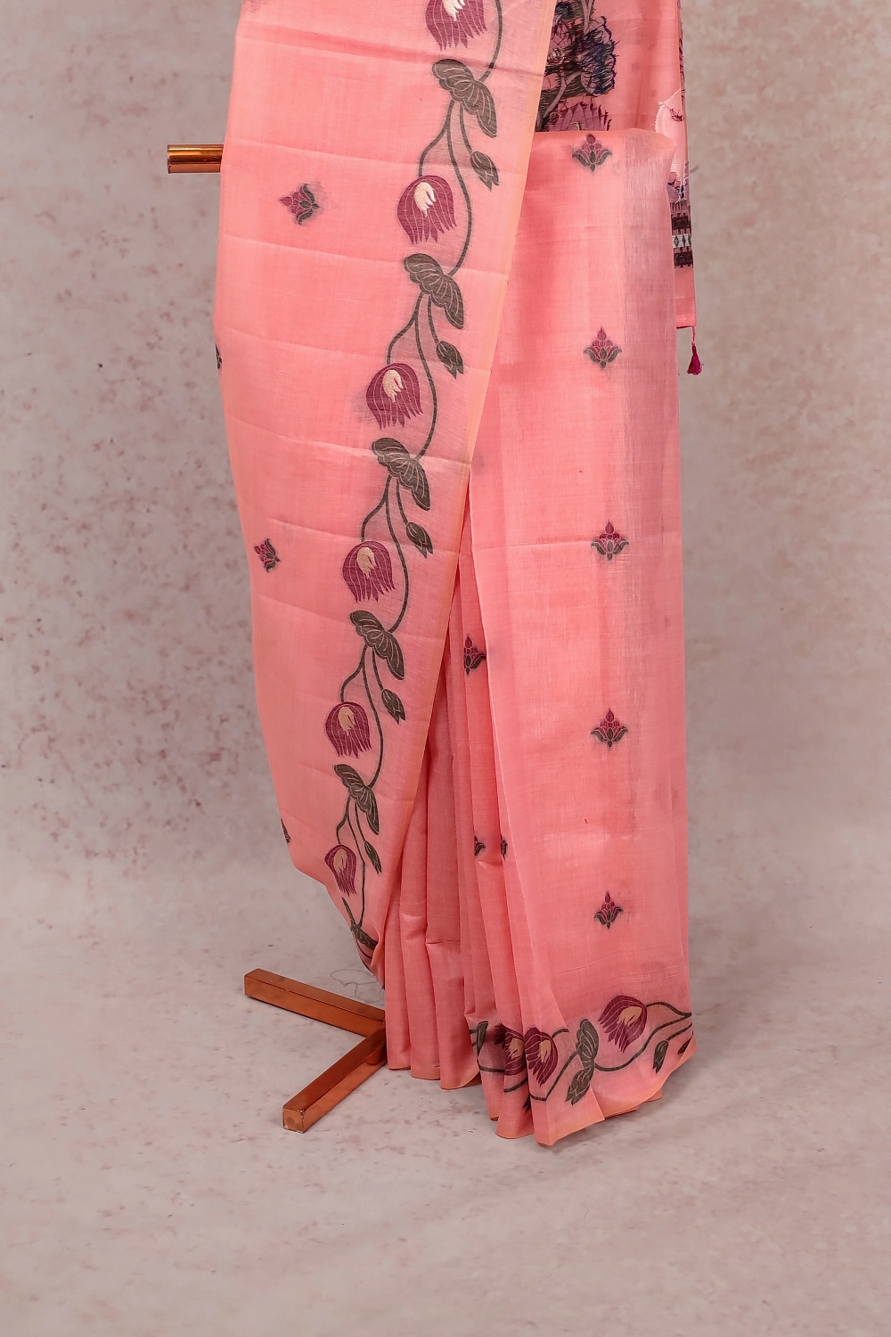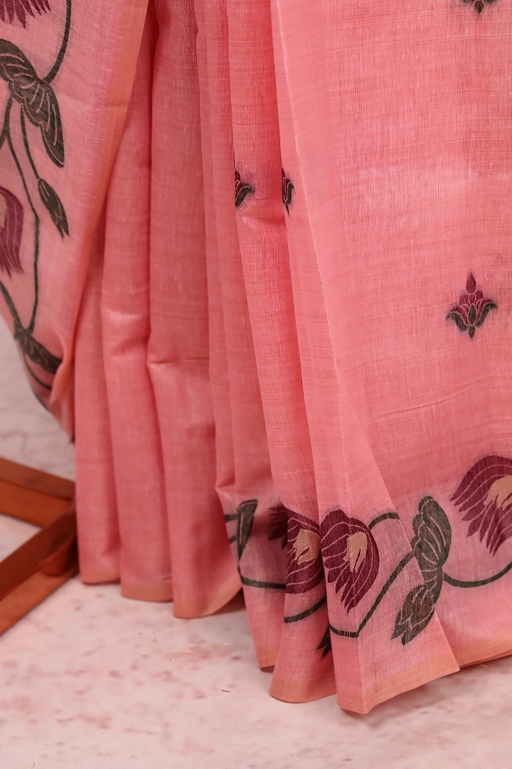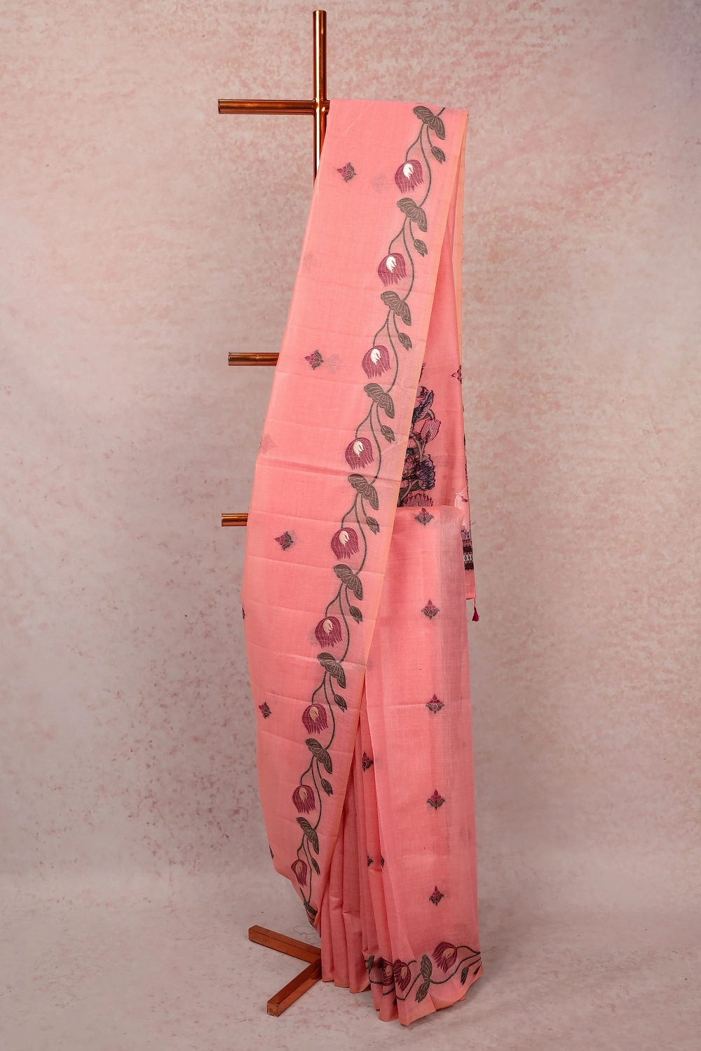 Pink Semi Jute Thread Butta Saree with Thread Border. Includes Unstitched Blouse