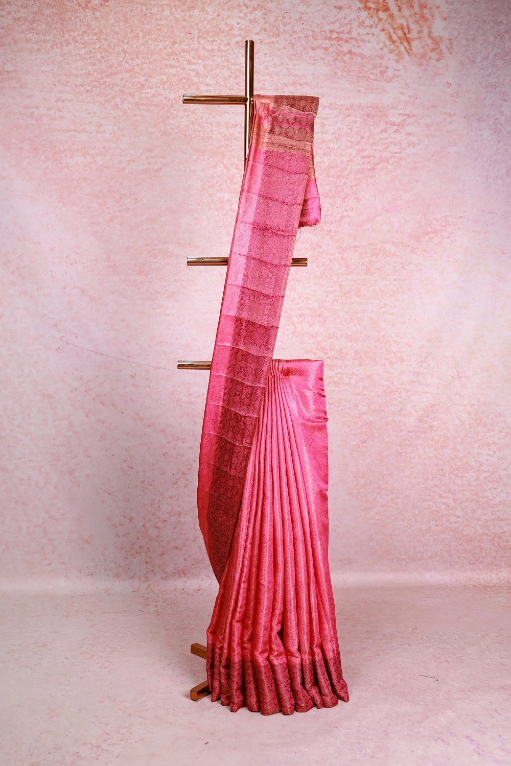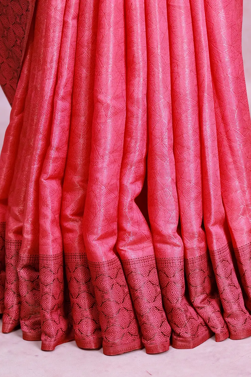 Pink Semi Silk Thread Design Saree With Zari And Thread Border. Includes Un Stitched Blouse