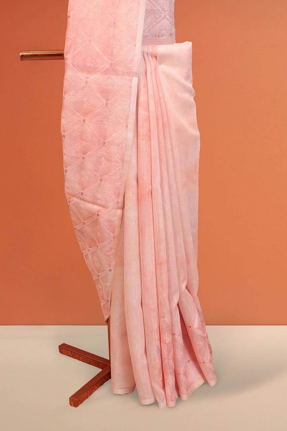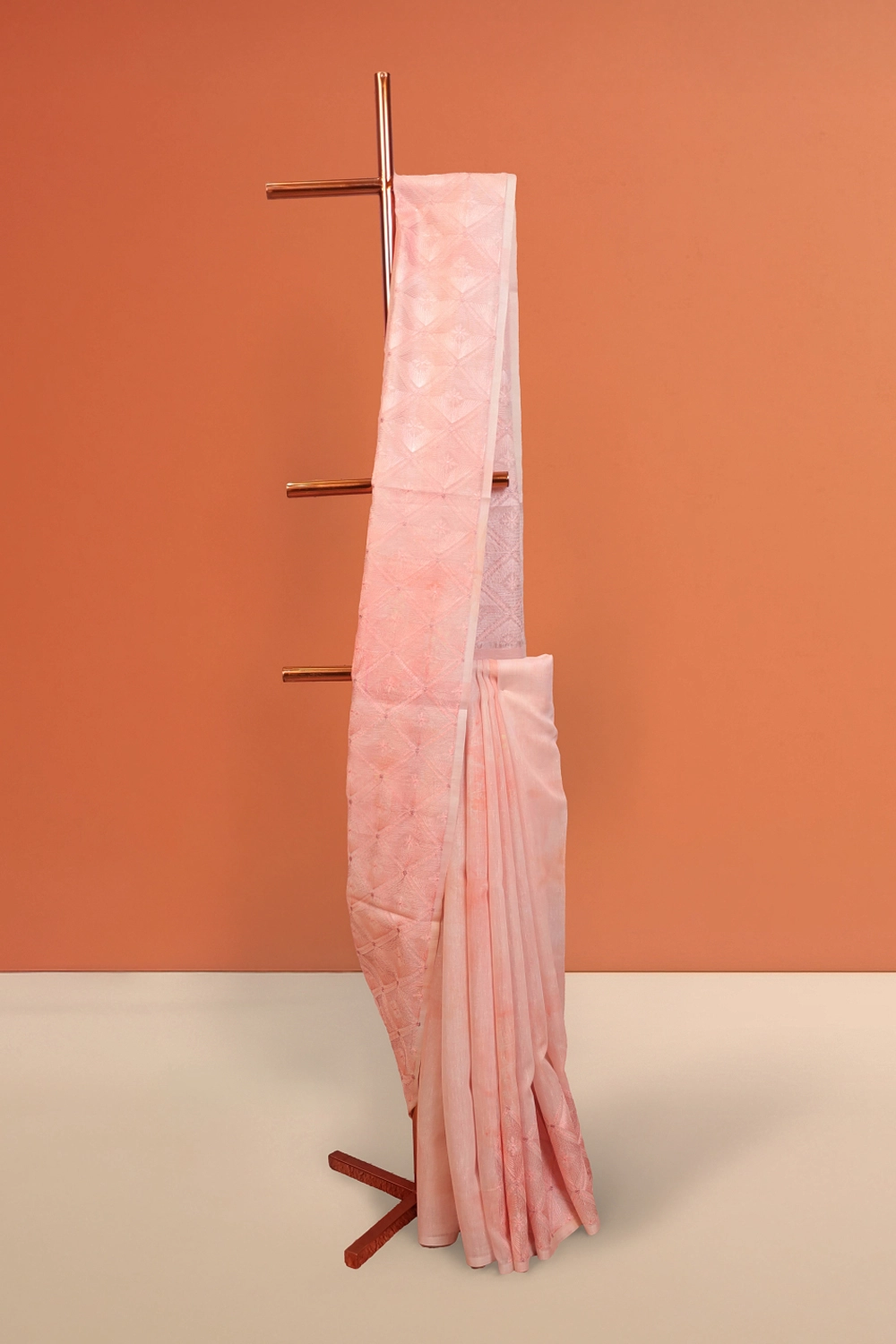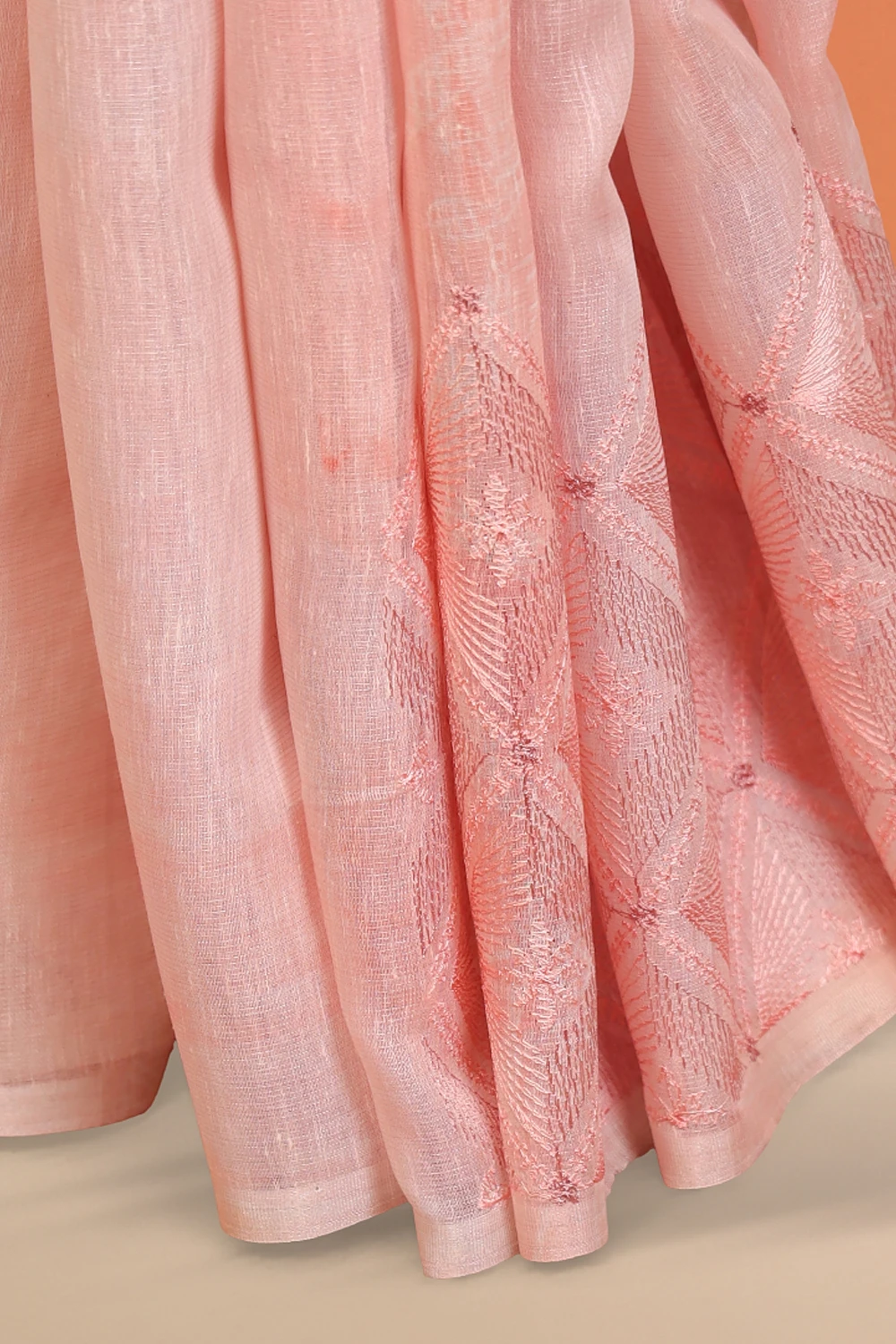 Pink Semi Tissue Plain Saree with Thread Border. Includes Unstitched Blouse