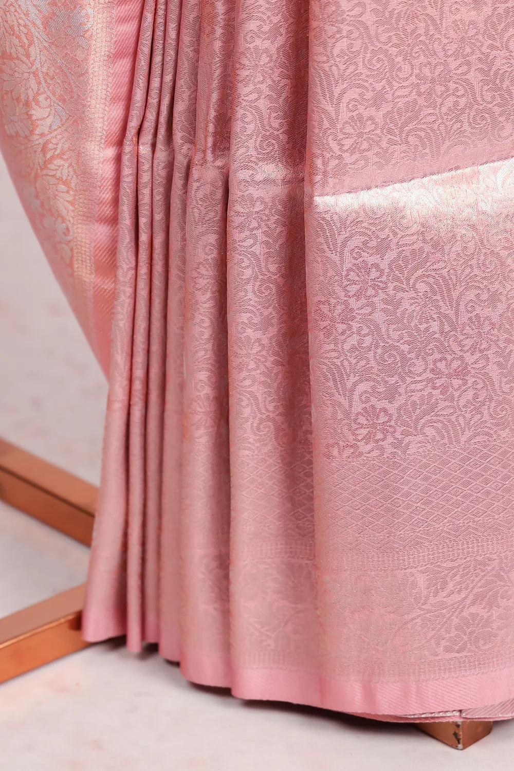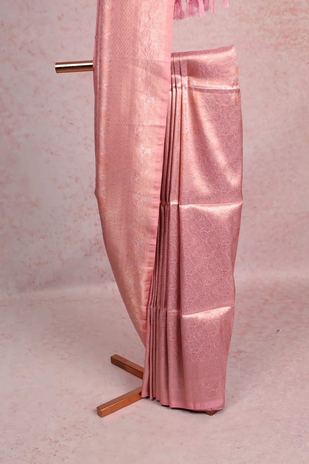 Pink Semi Tissue Brocade Saree with Designer Border. Includes Unstitched Blouse