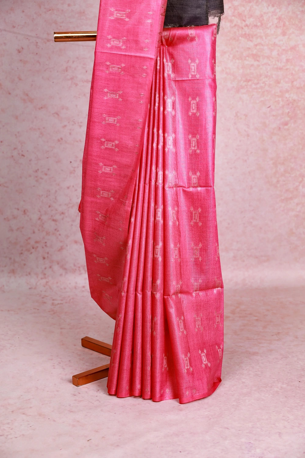Pink Semi Tussar Butta Saree Without Border. Includes Unstitched Blouse