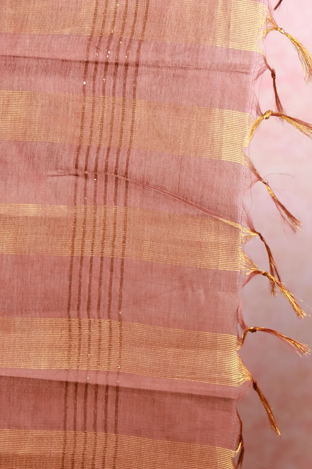 Pink Semi Tussar Stripes With Butta Saree Without Border. Includes Unstitched Blouse