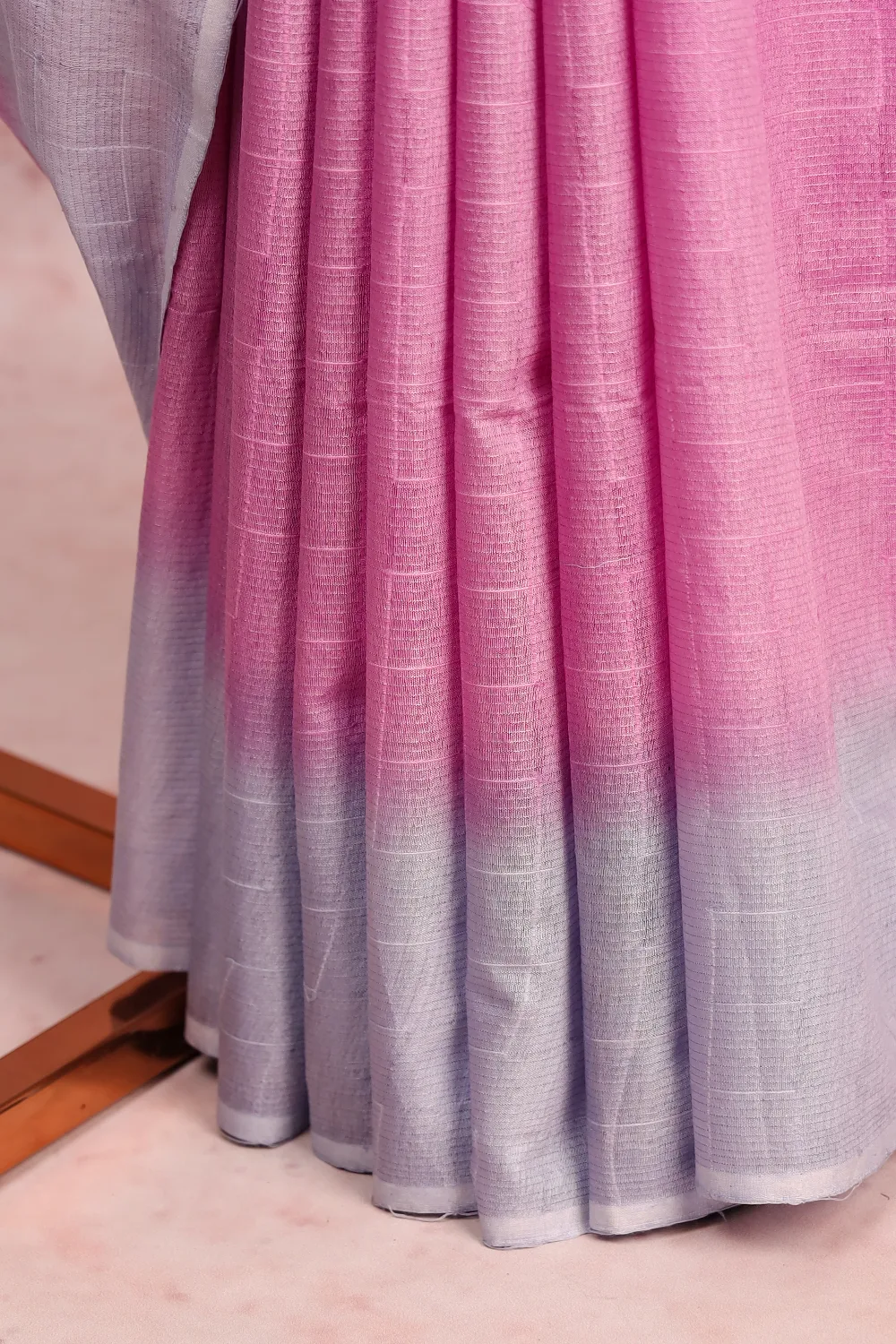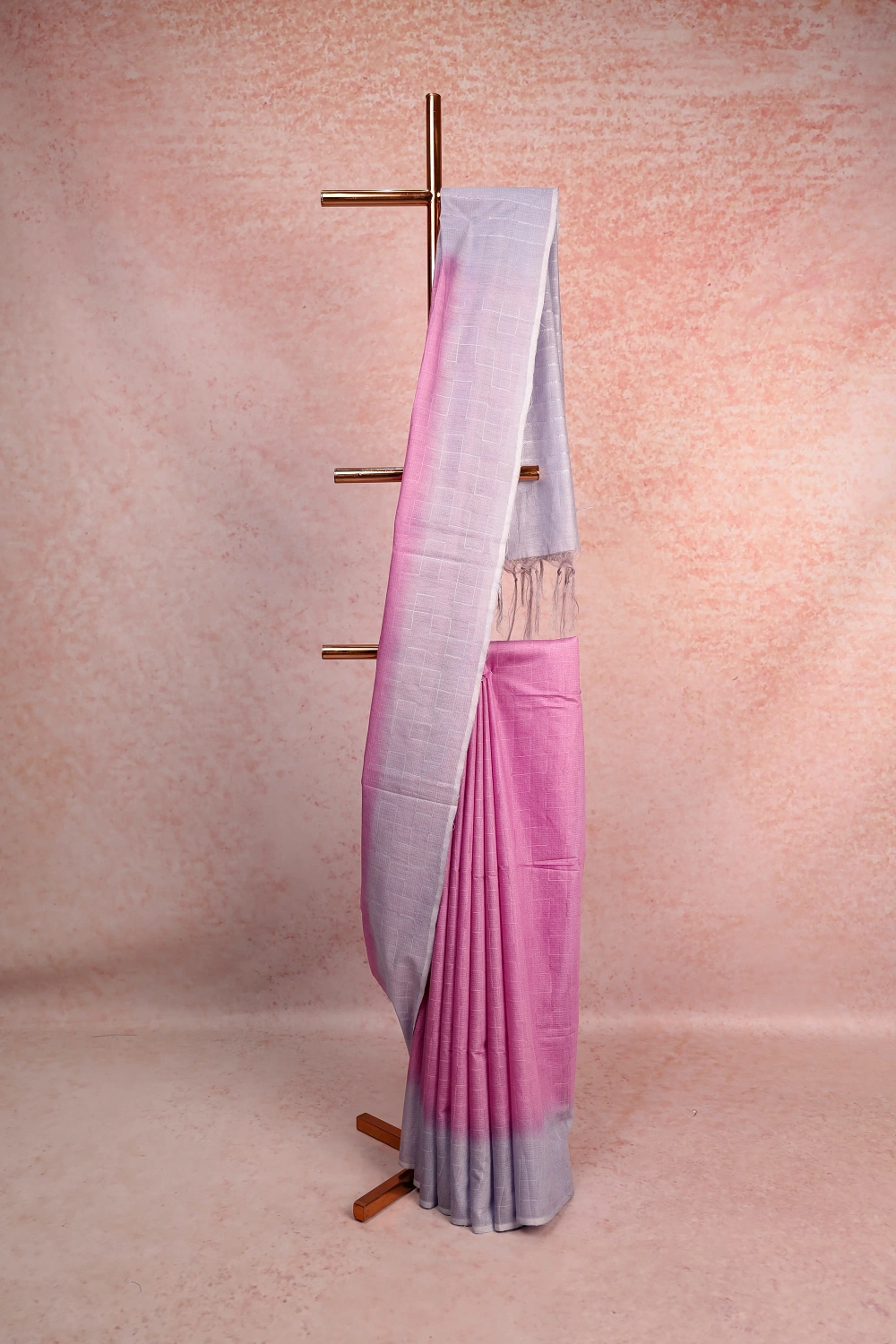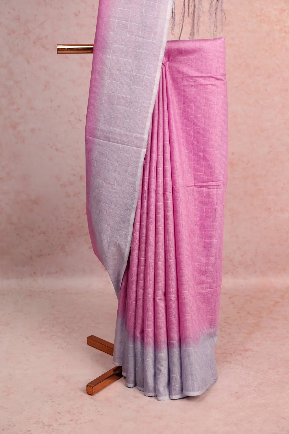 Pink Semi Tussar Self Check Saree With Plain Border. Includes Un Stitched Blouse