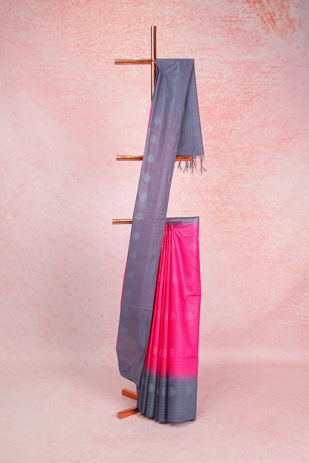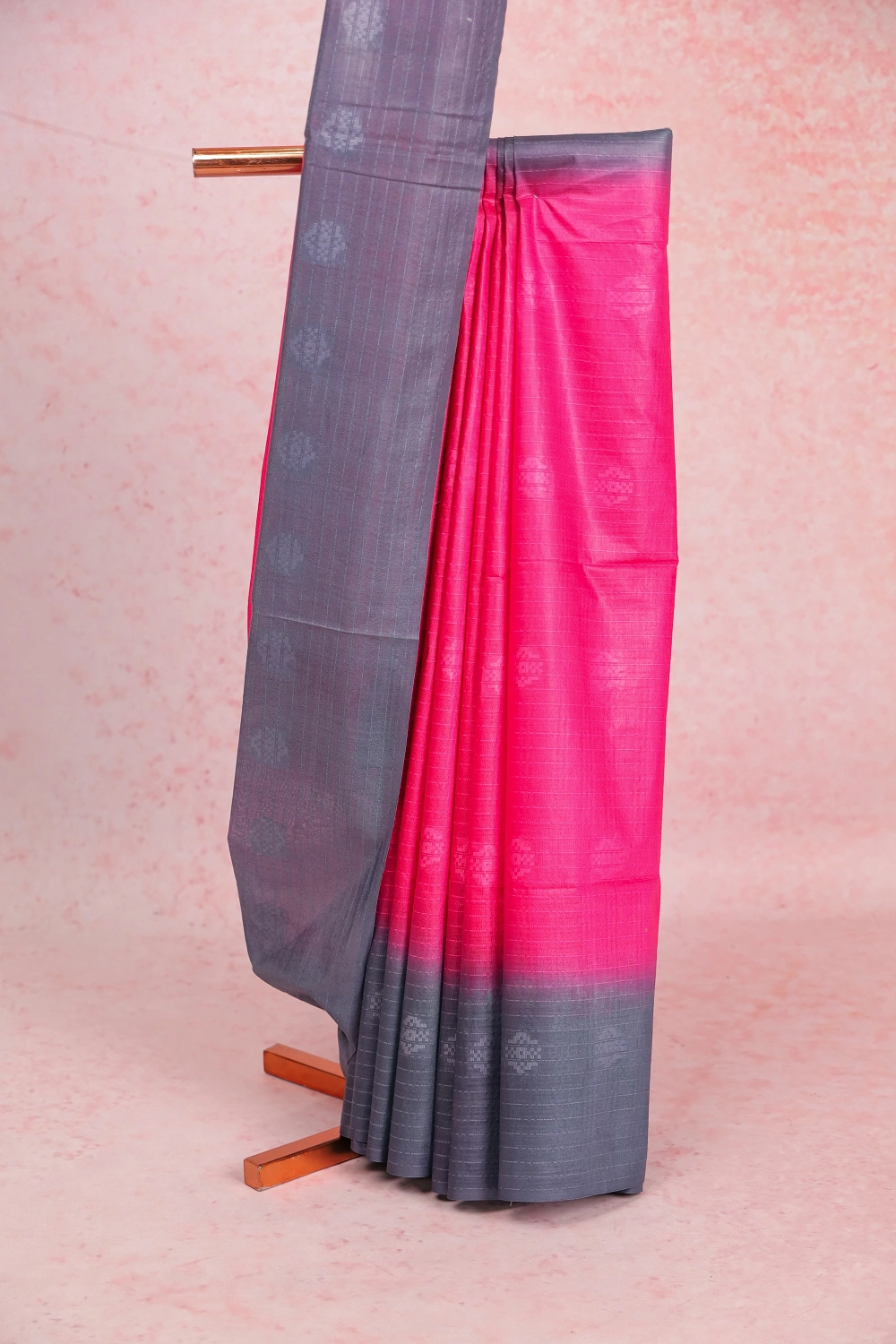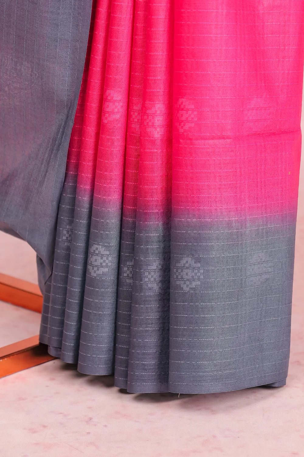 Pink Semi Tussar Plain Saree with Contrast Colour Border. Includes Unstitched Blouse