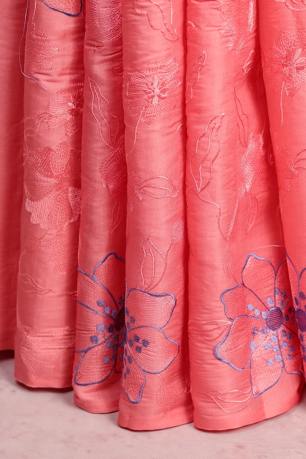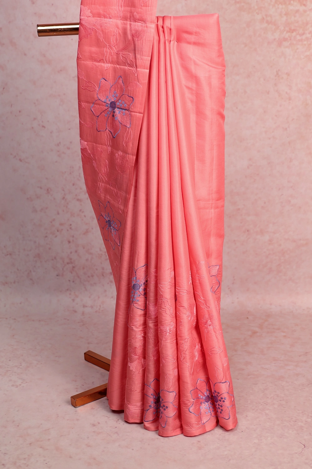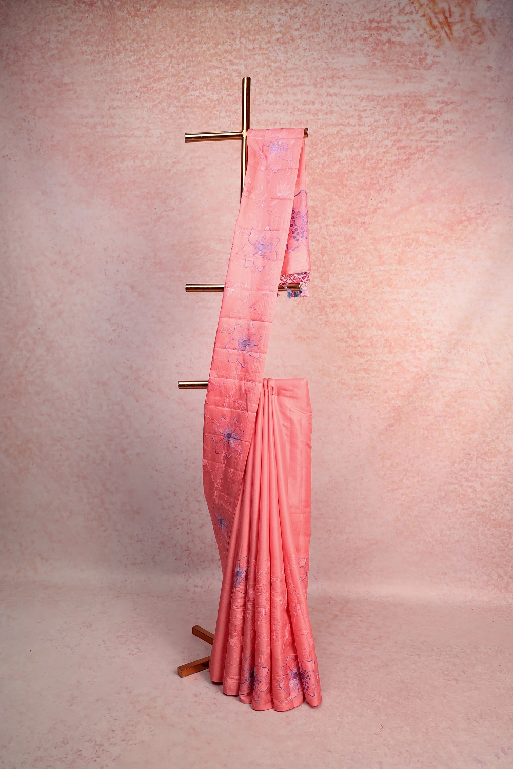 Pink Semi Tussar Saree without Border. Includes Un stitched Blouse