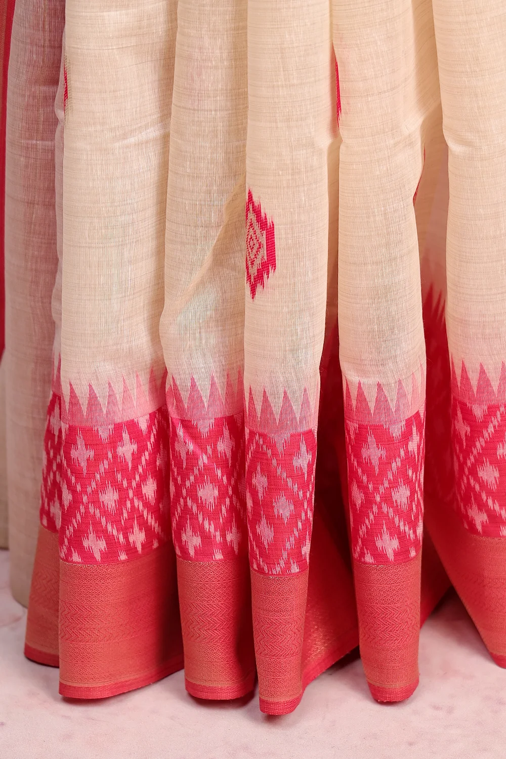 Pimkish Red Cotton Silk Thread Design Saree with Contrast Border. Includes Un stitched Blouse