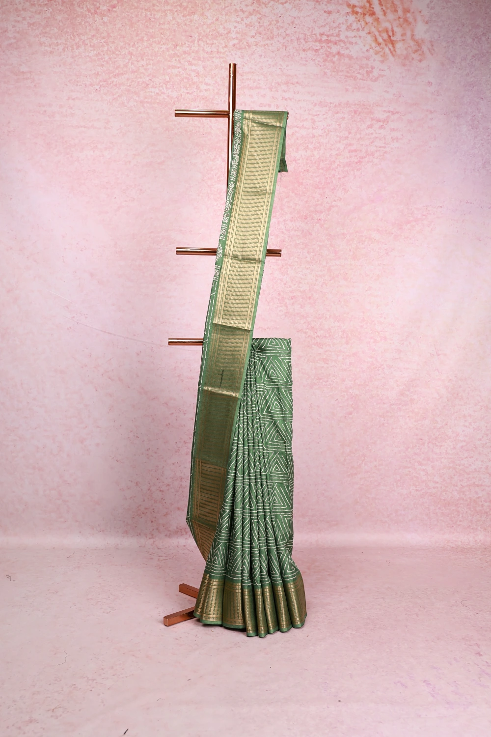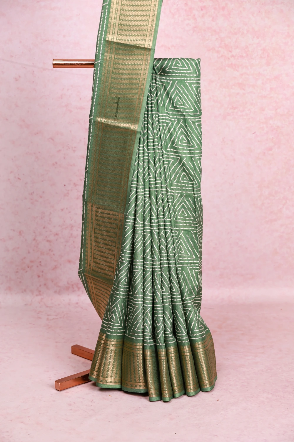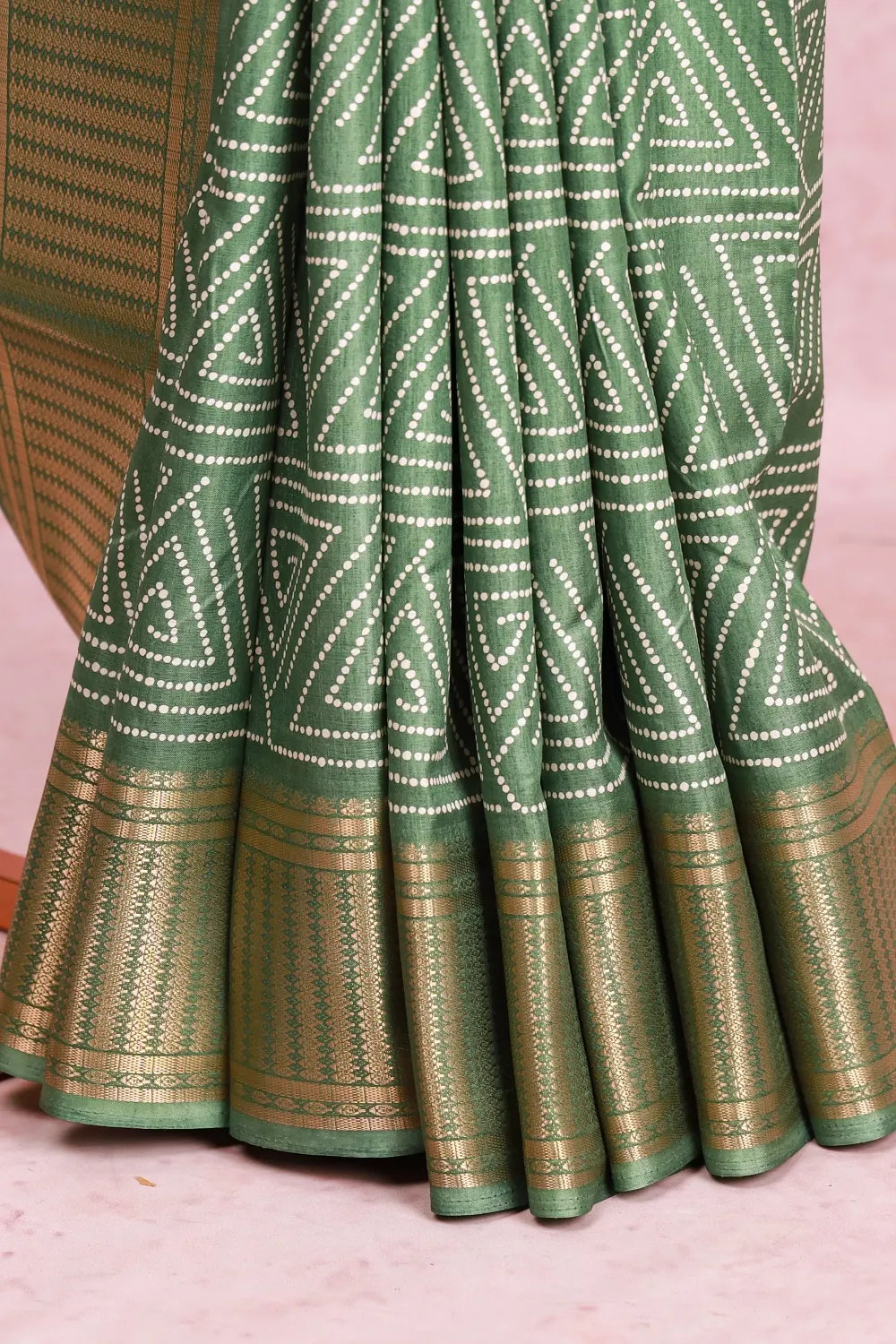 Pista Green Chiffon Dots Saree with Zari Border. Includes Unstitched Blouse